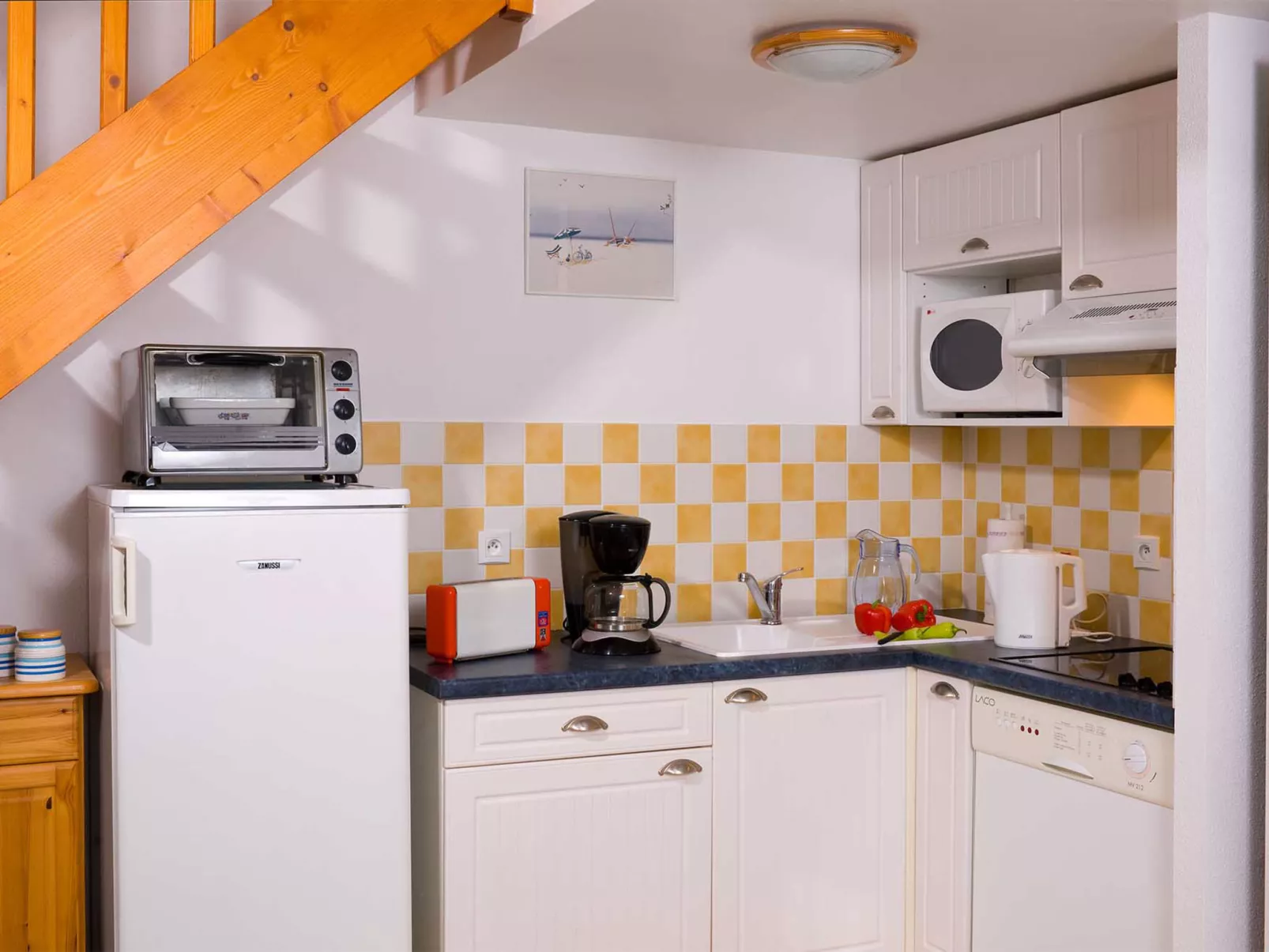 "Les Mas de St. Hilaire", huis in een rij 2-kamers 38 tot 44 m2 op 2 verdiepingen. Doelmatig ingericht: woon-/eetkamer met 1 divanbed, eettafel en TV te huur. 1 kamer met 1 2-pers bed (140 cm, lengte 190 cm). Kookhoek (4 keramische glas kookplaten, broodrooster, waterkoker, magnetron, elektrische koffiemachine). Aparte WC, bad of douche. Bovenverdieping: open galerij met 2 slaapplaatsen. Elektrische verwarming. Terras, kleine tuin 25 m2. Terrasmeubelen. Rookvrij huis. Maximaal 2 huisdieren/honden toegestaan. Rookmelders. In plaats van een afgesloten slaapkamer bevinden sommige slaapgedeeltes zich in een open ruimte (galerij, nis, etc.).