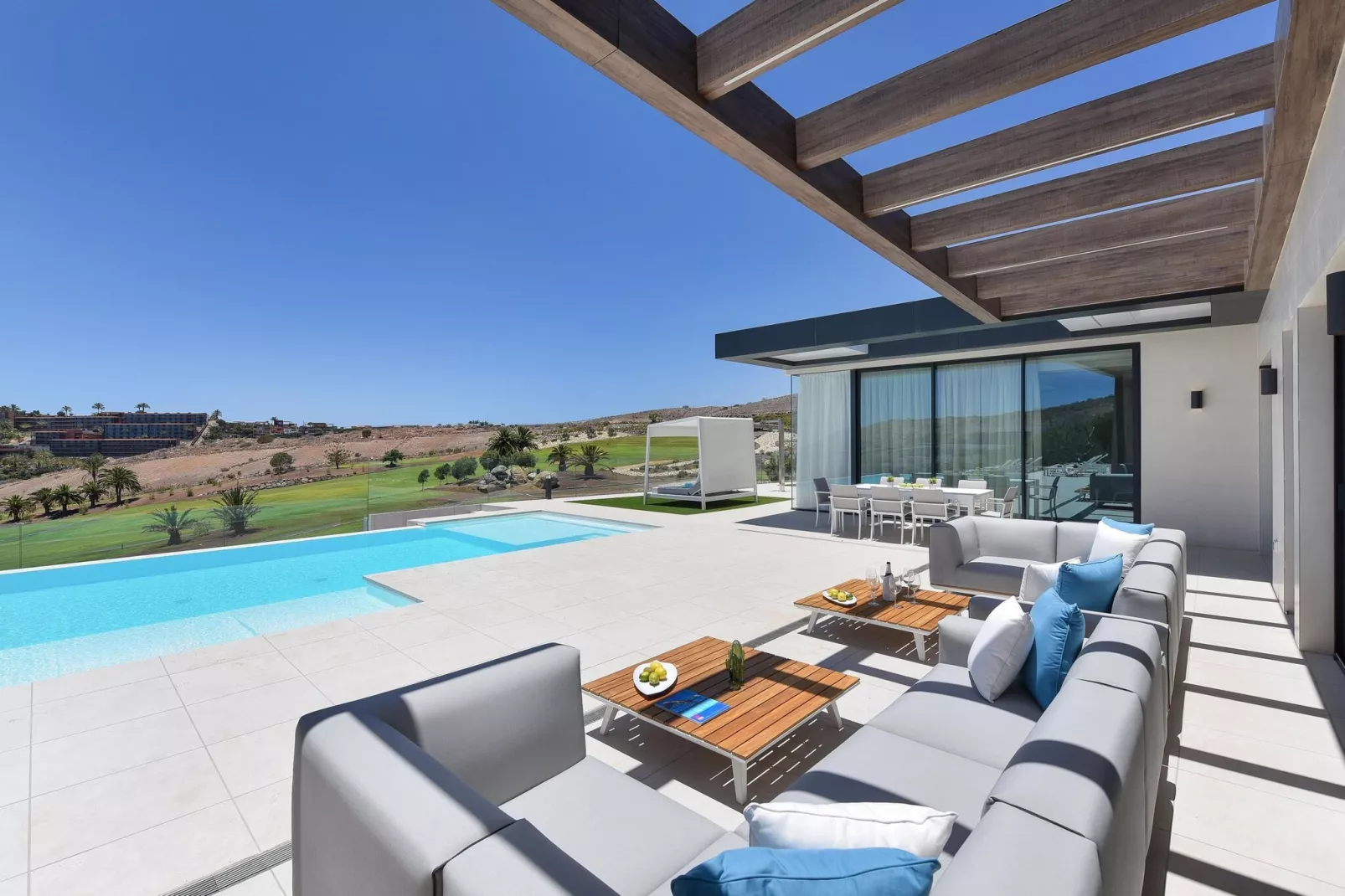 Sunset Villa is een indrukwekkend huis met 6 slaapkamers en 6 badkamers in Salobre Golf Resort met een capaciteit voor maximaal 12 personen, een privézwembad en een prachtige buitenruimte met een fantastisch uitzicht.