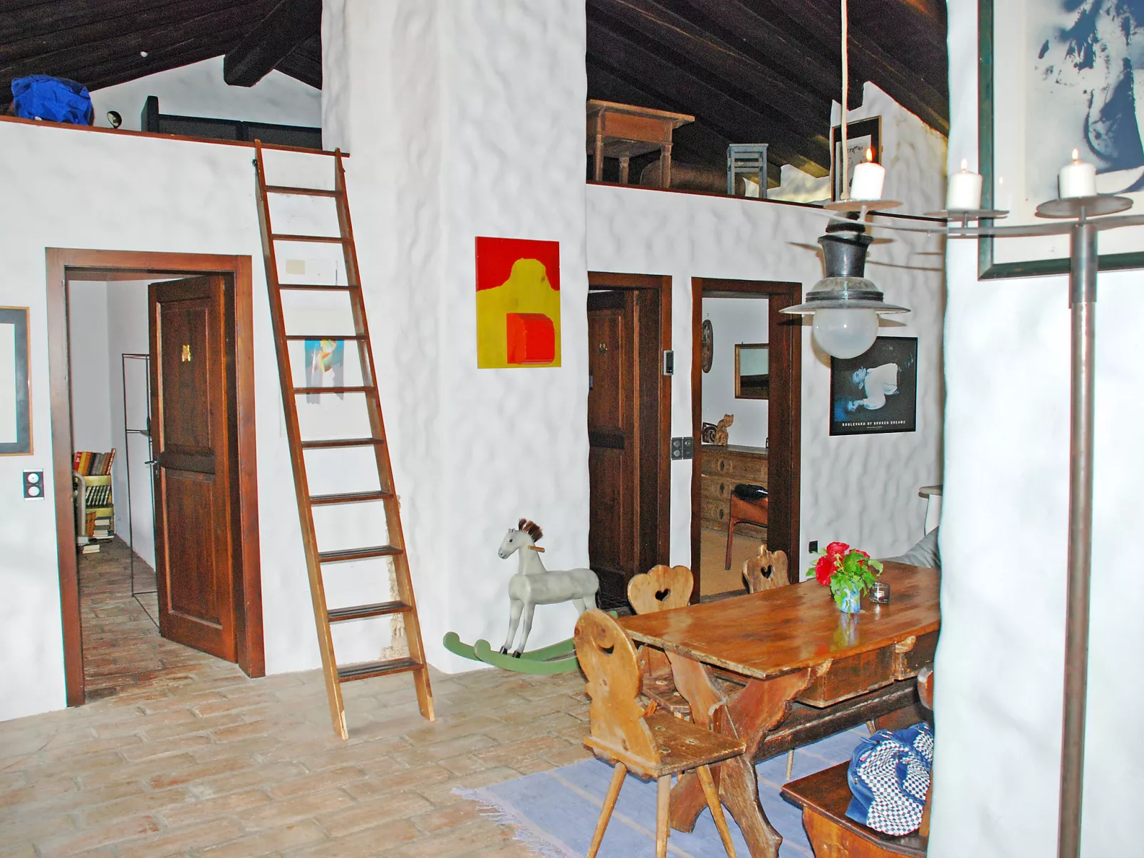 Huis 5-kamers op 2 verdiepingen. Ruim, gedeeltelijk afgeschuinde daken, comfortabel en smaakvol ingericht: 1 2-pers. kamer met 1 2-pers bed (160 cm, lengte 200 cm). Groot eetkamer met open haard. Woonkeuken (oven, 4 keramische glas kookplaten, elektrische koffiemachine, pads voor de koffiemachine (NESPRESSO) extra) met open haard. Douche/WC. Vloerverwarming. Bovenverdieping: groot, open woon-/eetkamer met open haard, eethoek, video en DVD´s beschikbaar. Uitgang naar het balkon. 1 kamer (100 cm, lengte 200 cm). (ladder) open galerij met afgeschuinde daken, hoogte van het plafond 170 - 190 cm met 1 2-pers bed (160 cm, lengte 200 cm), Sat-TV en Flatscreen TV. 1 2-pers. kamer met 1 2-pers bed (160 cm, lengte 200 cm). Bad/douche/WC, dubbele wastafels. Vloerverwarming. Natuurstenen vloeren. Balkon 5 m2, ruime zithoek in de tuin, tuin. Ligstoelen (5). Zeer mooi uitzicht op de bergen, het dal en het landschap. Ter beschikking: strijkijzer, haardroger. Internet (WiFi, gratis). Niet geschikt voor kleine kinderen. Rookvrij huis. Maximaal 2 huisdieren/honden toegestaan. In plaats van een afgesloten slaapkamer bevinden sommige slaapgedeeltes zich in een open ruimte (galerij, nis, etc.). NL-00012758