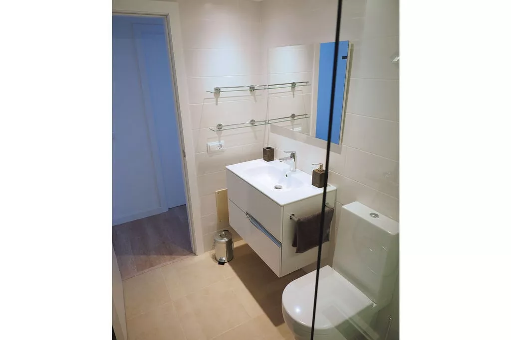 Het appartement van 64 m² op de 6e verdieping (lift beschikbaar) met uitzicht op zee vanuit alle ramen biedt een slaapkamer, badkamer met douche, een groot woon/eet/keuken en een opbergkamer. De 11 m², overdekt balkon kijkt naar het oosten richting de baai van Cala Millor, maar geeft ook het uitzicht op de bergen in het westen in de achterkant vrij.