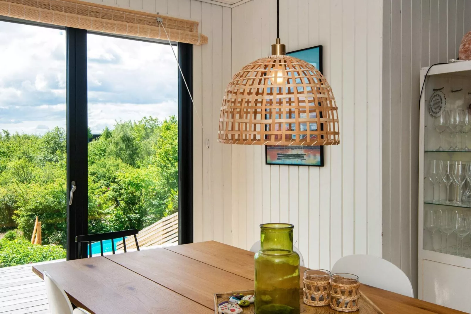 Ferienhaus mit erhöhter, attraktiver Lage und wunderbarer Aussicht zur Bucht von Ebeltoft, die Sie von der Terrasse aus genießen können. Hier ist Platz für Entspannung und Familienleben. Im Außenbereich steht für den Badespaß zudem ein großer Pool mit guter Tiefe zur Verfügung, der ab 1.6. bis 1.9. genutzt werden kann. Zudem gibt es ein Ballfeld für z.B. Basketball oder Petanque sowie ein großes Trampolin (Nutzung nur auf eigenes Risiko). Im Haus offener Küchen-/Wohnbereich für das Familienleben, in dem sich die großen Fenster zur Seite schieben lassen, sodass Verbindung zur Natur ringsum entsteht und man die herrliche Aussicht so richtig genießen kann. TV-Empfang nur über WLAN und Streaming eigener Dienste. Das Ferienhaus liegt in einer Landschaft mit vielen Möglichkeiten für Naturerlebnisse. Der Strand ist zudem nur wenige Gehminuten vom Haus entfernt. Keine Vermietung an Jugendgruppen erwünscht!A refundable deposit might be charged closer to your check-in date. The security deposit ensures a smooth stay and covers any additional services or consumption charges.This deposit covers utilities consumed during your stay and any additional services that may be taken.The final amount will be adjusted based on actual meter readings, actual usage of extra services, and any remaining balance will be refunded within 21 days after checkout.This deposit simply acts as a prepayment for charges that you would anyways pay for, ensuring a seamless stay and check-out experience.
