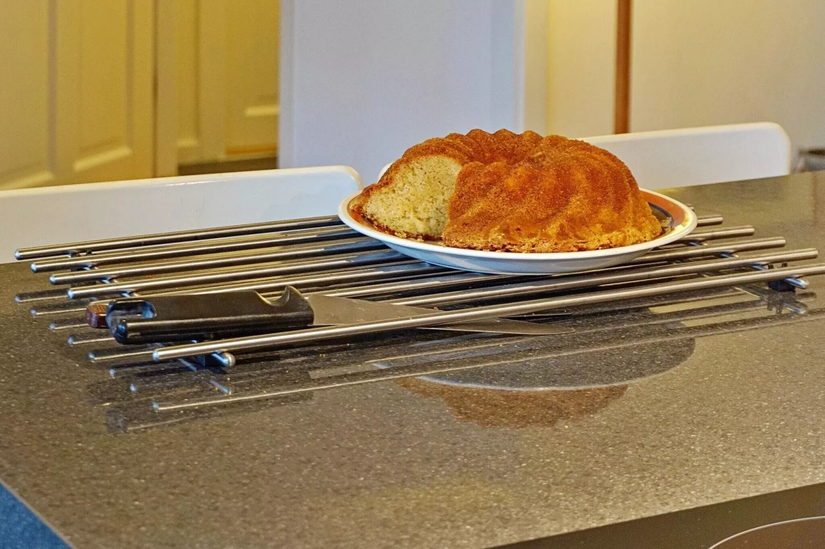 De woonkamer en keuken hebben een open indeling met een kookeiland, voldoende zitplaatsen, een knusse hoek, eetruimte en bank, een glazen veranda met directe toegang vanuit de woonkamer, hier kan iedereen samenkomen en toch een eigen plek hebben als men dat wil. Mooie vloeren die afkomstig zijn uit een oude kerk bedekken de hele woonkamer. Er is een houtkachel voor koele avonden.