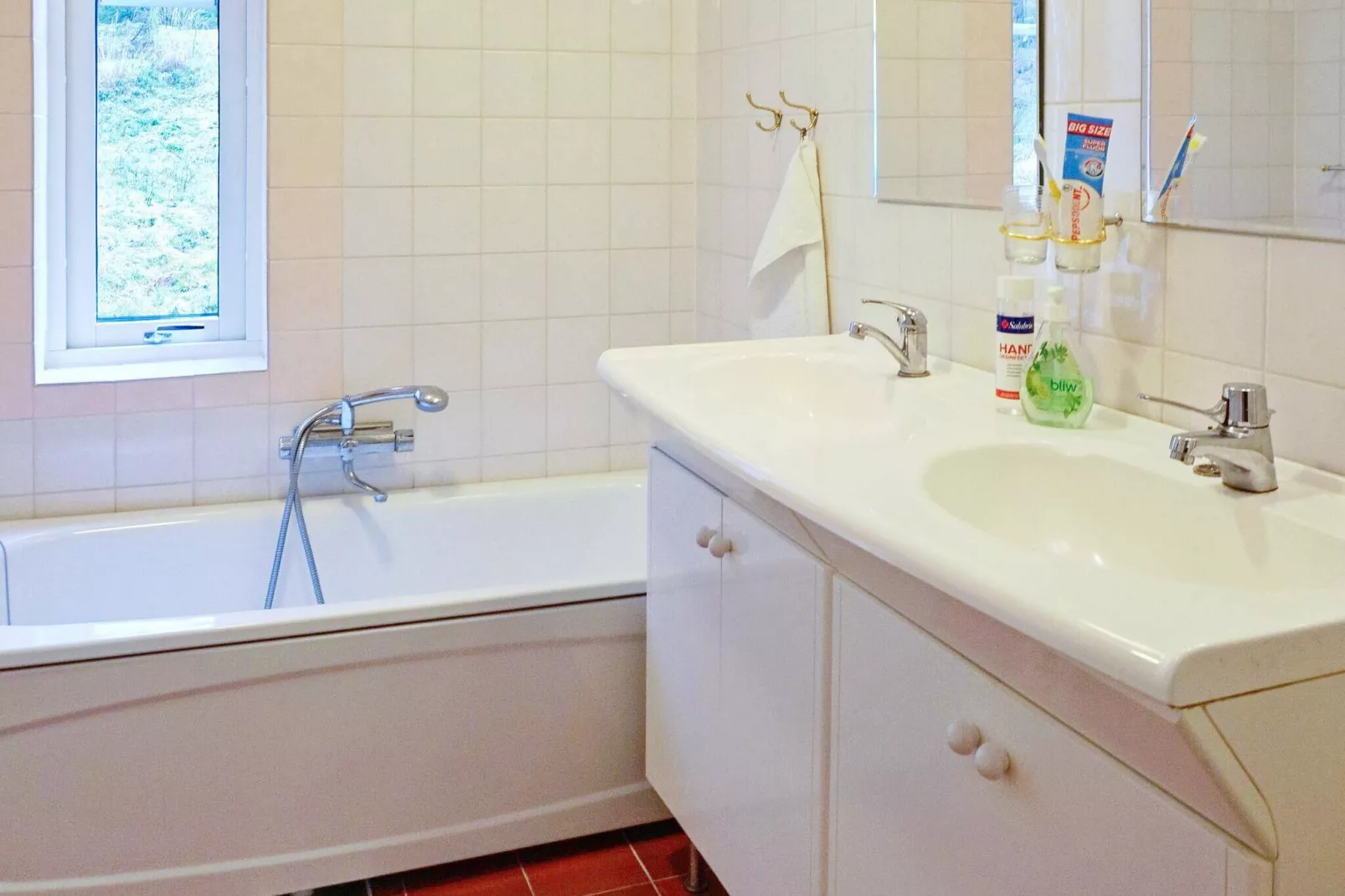 In het huis zijn er twee badmogelijkheden, een badkamer met bad en douche, een douchecabine bij de wasruimte, en een gastentoilet bij een van de tweepersoonskamers. Er is ook een ruime wasruimte met wasmachine en droger. Het perceel ligt iets hoger en heeft geen directe buren, dus het is vrij van inkijk. Een weiland ligt voor het huis, waar je in de avond zowel elanden als reeën kunt zien.
