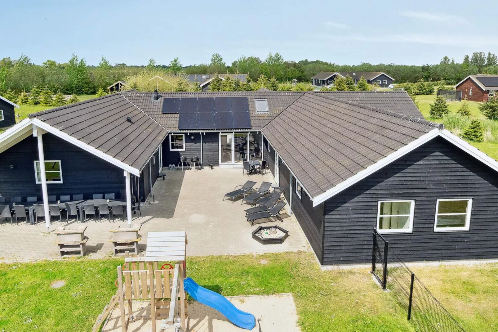 In der Nähe des weißen Sandstrands von Marielyst finden Sie dieses Ferienhaus für 24 Personen mit Swimmingpool, Whirlpool, Sauna und verschiedenen Aktivitäten. Das Haus ist mit Liebe zum Detail eingerichtet. Das Ferienhaus ist äußerst geräumig und gut proportioniert und verfügt über drei separate Schlafbereiche mit jeweils eigenem Bad. Ein großer Dachboden bietet ausreichend Platz für mehrere Übernachtungsgäste. Beide Dachböden sind mit einem Fernseher ausgestattet. In diesem Haus wurde großer Wert auf Qualität gelegt – insbesondere im beeindruckenden Poolbereich mit einem 22 m² großen Pool mit Wasserrutsche, einem Whirlpool für 6 Personen und einer großen Sauna. Das Haus verfügt über zwei Aktivitätsräume: einen mit Tischtennis, Darts, Fußball, Playstation 4 Pro und Airhockey. Der andere ist der „Freizeitraum“ des Hauses mit Billard, Darts und einer Bar mit Kühlschrank. Die Küche ist groß und hervorragend ausgestattet, sodass mehrere Köche problemlos gemeinsam kochen können. Zur Ausstattung gehören unter anderem zwei Kaffeemaschinen, zwei Elektroherde, zwei Backöfen, zwei Kühlschränke (je 386 Liter) und zwei Geschirrspüler. Zusätzlich gibt es einen 323-Liter-Gefrierschrank. Auf der großen, teilweise überdachten Terrasse können Sie den dänischen Sommer in Gartenmöbeln genießen. Auf dem großen Grundstück rund um das Haus ist auch an die jüngsten Gäste gedacht: Spielturm, Schaukeln und Sandkasten. Zwei Grills sind vorhanden. Das Grundstück ist teilweise mit einem 150 cm hohen Zaun eingezäunt. Vor dem Haus befindet sich ein großer Parkplatz mit Platz für ca. 10 Autos. Die Nebenkosten und die Kaution werden im Büro bezahlt. Nicht an Jugendgruppen vermietbar.