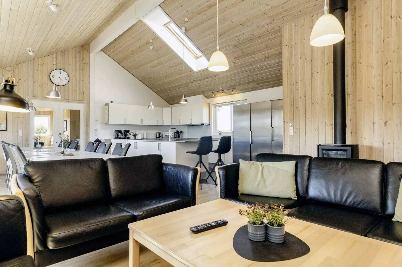 De woonruimte van het vakantiehuis is smaakvol ingericht, met modern meubilair, een houtkachel, TV en Playstation. Het centraal geplaatste keuken-/woongebied is onder andere uitgerust met twee keramische kookplaten en twee vaatwassers, zodat het koken voor tot 20 personen en de daaropvolgende afwas sneller kan verlopen. Het vakantiehuis wordt verwarmd met elektrische verwarming en een energiezuinige warmtepomp.