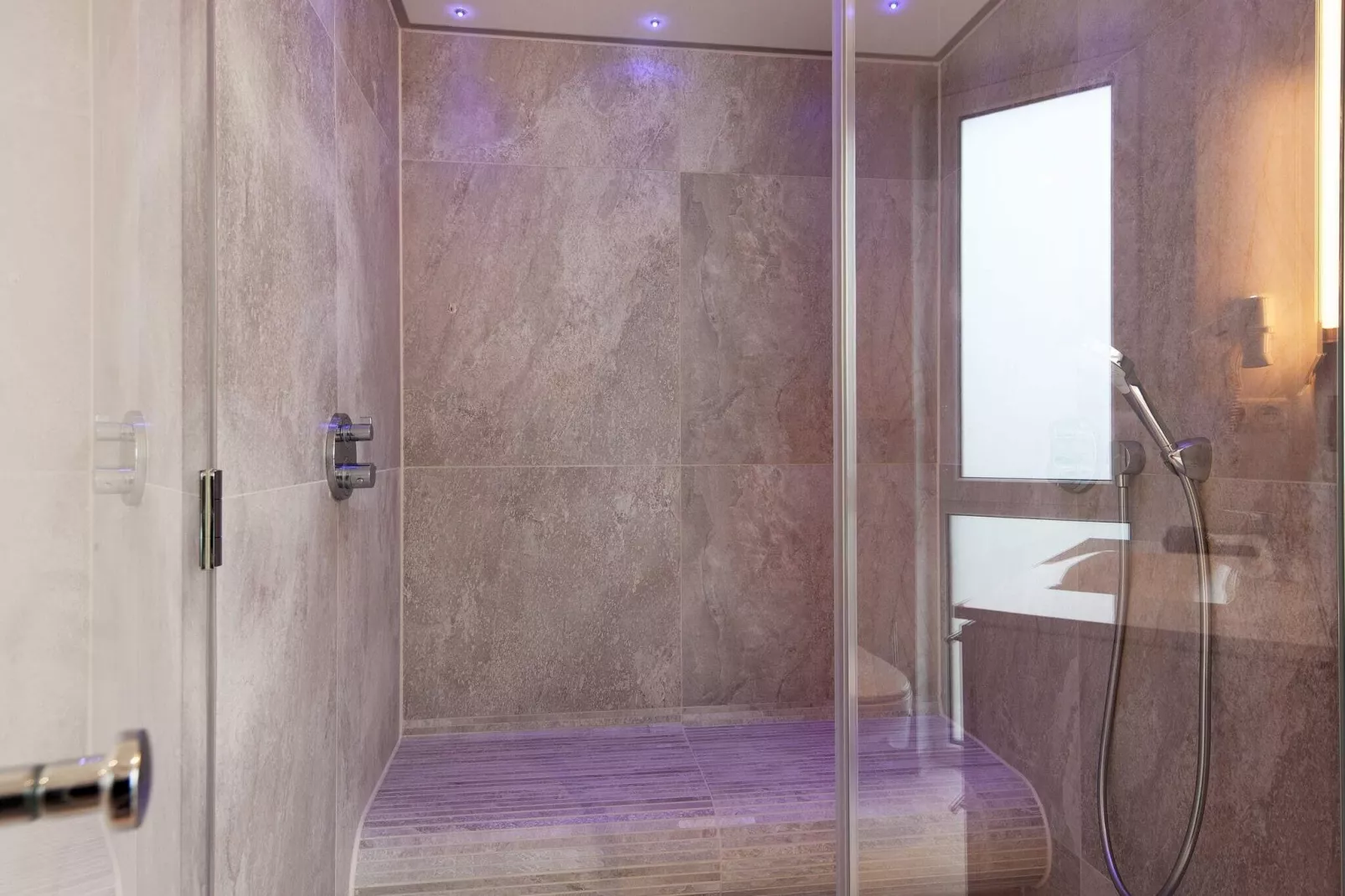 Geniet van het prachtige panoramische uitzicht op de Oostzee van 's ochtends tot 's avonds. De moderne en comfortabel ingerichte woning bestaat uit een open keuken-woonruimte met eetplaats en toegang tot het grote balkon / het grote terras. Daarnaast is er een badkamer met regendouche met stoomfunctie en vloerverwarming.
