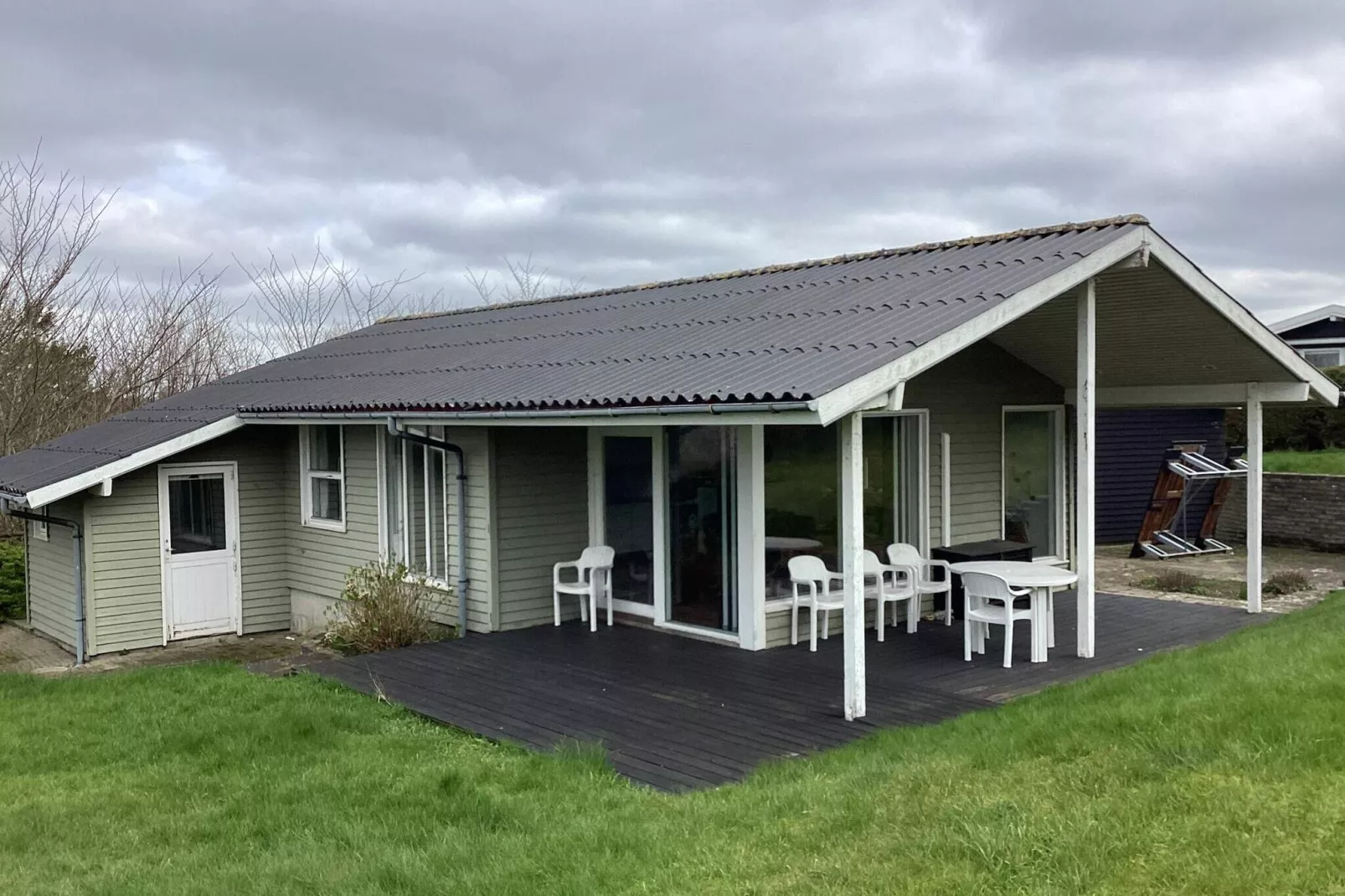 Willkommen in diesem leicht erhöht gelegenen Ferienhaus mit herrlichem Ausblick zum Wasser und direktem Zugang zum nur 300 m entfernten Strandufer. Liegt umgeben von ruhiger und ungestörter Landschaft, ideal für einen erholsamen Urlaub mit Familie oder Freunden. Das Ferienhaus bietet Platz für bis zu sechs Personen und eignet sich daher sowohl für kleinere Gruppen als auch für Familien. Das Badezimmer ist mit einer Fußbodenheizung ausgestattet, sodass Sie mit warmen Füßen in den Tag starten können. Das Haus verfügt über eine offene Küche in Verbindung mit einem Wohnzimmer, das Zugang zur Terrasse hat, von wo aus Sie Meerblick. Draußen auf der überdachten Terrasse haben Sie die Möglichkeit, unabhängig vom Wetter die schöne Umgebung und die frische Luft zu genießen. Mit einem Holzkohlegrill ergeben sich perfekte Möglichkeiten für gemütliche Grillabende und geselliges Beisammensein. Darüber hinaus ist das Ferienhaus mit einem doppelten Carport ausgestattet, der praktisches Parken und Schutz für Ihre Autos bietet. Dieses traditionelle Ferienhaus ist die ideale Wahl für alle, die einen ruhigen Urlaub in der Nähe der Natur und des Strandes verbringen möchten. Keine Vermietung an Jugendgruppen.A refundable deposit might be charged closer to your check-in date. The security deposit ensures a smooth stay and covers any additional services or consumption charges.This deposit covers utilities consumed during your stay and any additional services that may be taken.The final amount will be adjusted based on actual meter readings, actual usage of extra services, and any remaining balance will be refunded within 21 days after checkout.This deposit simply acts as a prepayment for charges that you would anyways pay for, ensuring a seamless stay and check-out experience.