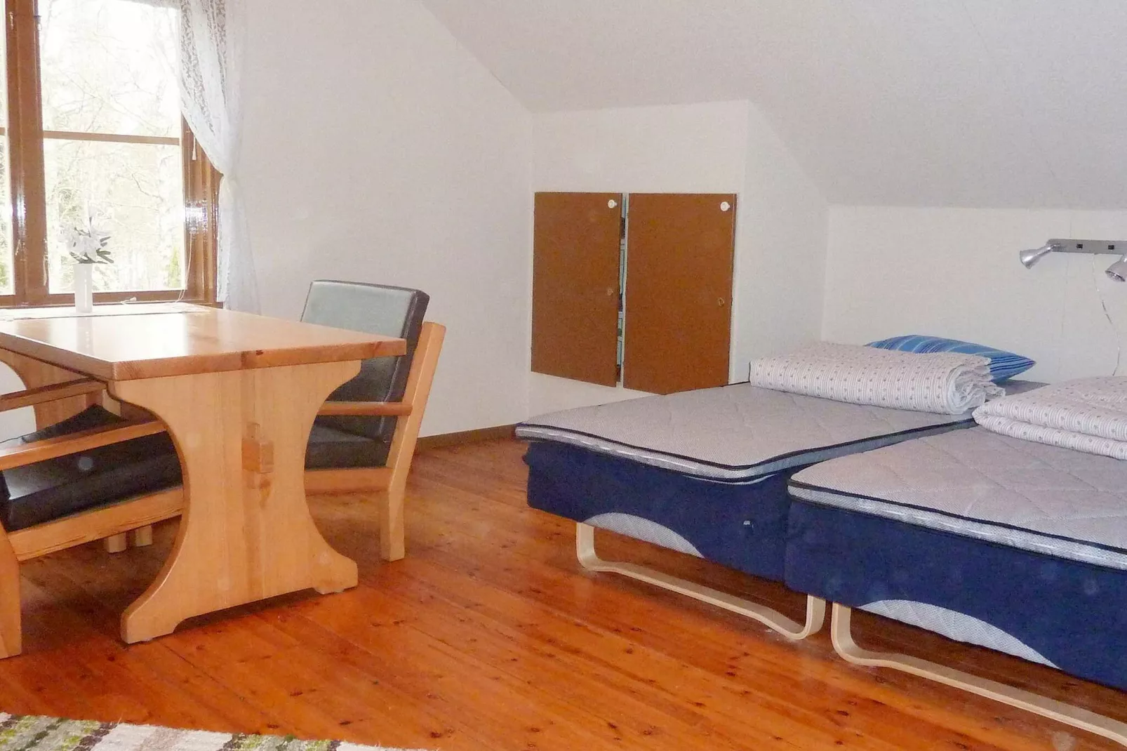 In ländlicher Umgebung und unweit eines Seeufers bewohnen Sie hier den alten Hof Ramse Friluftsgård, eine Art Vereinslokal, der eine geräumige Unterkunft in erhöhter, naturschöner Lage bietet. Nur 200 m weiter befindet sich ein öffentliches Badeufer – gleich daneben liegt das zum Haus gehörige Boot, das gemietet werden kann. Auf einem parkähnlichen Gelände am Seeufer befindet sich ein eingezäuntes Gehege, in dem gut 10 Hirsche zu Hause sind. Um das Gehege herum und am Seeufer entlang führt auch ein Fitnesspfad. Das alte Haus, einst Wohnhaus einer Kleinsiedlerfamilie, wurde zuletzt in den 80-er Jahren modernisiert. Die Küchenausstattung umfasst u.a. Elektro-Herd, Kühl-/Gefrierschrank und Mikrowelle. Im geräumigen Wohnzimmer gibt es einen Kamin. Außerdem 2 Toiletten, separate Dusche und 1 SZ mit 2B im Parterre. In der oberen Etage liegt ein gr. SZ mit 1DB und zwei extra Schlafplätzen auf Liegen. Außer langen Spaziergängen durch die grüne Natur kann man auch schöne Ausflüge unternehmen, z.B. zum Goldwaschen nach Ädelfors (17 km), zur Grube Kleva Gruva (20 km), zu Astrid Lindgrens Värld (40 km), zu Michels Katthult (30 km), zur alten Stadt Eksjö (60 km) oder zu den Glasmanufakturen im Glasriket (90 km).
