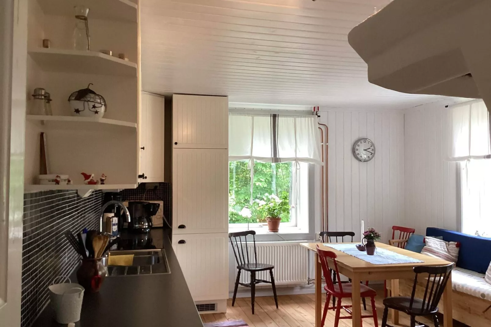 Willkommen in diesem traditionell rotweißen Ferienhaus auf dem Lande. Das Grundstück liegt direkt am Wald, wo Elche und Rehe zu Hause sind. Diese Unterkunft eignet sich für eine Familie oder eine Gruppe mit 6 bis 7 Personen, die in der Nähe mehrerer schöner Seen, wunderschöner Natur und gemütlicher Orte sein möchten. Die schönen Radwege von Borenshult und Motala erreichen Sie bequem. Sie befinden sich auch in der Nähe des Sees Boren mit mehreren Badeufern. Bitte beachten Sie, dass sein Haus nicht für Firmenbuchungen vermietet wird. Das Haus diente einst als Telegrafenhäuschen des Dorfes, wurde jedoch inzwischen sorgfältig renoviert und vermittelt eine sehr heimelige und warme Atmosphäre. Es gibt eine Terrasse mit vielen Sitzgelegenheiten. Vor dem Haupteingang gibt es auch einen schön abgeschirmten Sitzplatz im Freien. Von der Eingangsdiele geht es rechts in die Küche mit einer ansprechend hellen Mischung als Alt und Neu, wobei alle Geräte neu sind. Der alte Holzherd wurde als gemütliche Feuerstelle erhalten. Das Haus ist das ganze Jahr über buchbar. Nach links öffnet sich das Wohnzimmer mit Sitzecke. Nebenan befindet sich das erste der zwei Schlafzimmer im Haus, dieses mit einem 180 cm breiten Doppelbett. Der Einrichtungsstil ist eine ländliche Mischung aus Alt und Neu. Das modernisierte Badezimmer bietet eine geräumige Duschkabine, Waschbecken und Toilette. Am Haupteingang steht zudem eine Waschmaschine bereit. Steile Treppe ins Dachgeschoss, nicht für Kleinkinder oder körperlichen eingeschränkte Gäste geeignet. Oben befindet sich ein weiteres Schlafzimmer mit einem 180 cm breiten Doppelbett. Unten im Wohnzimmer stehen zudem eine 140 cm breite Schlafcouch sowie ein 100 cm breites Zustellbett als Ausweichmöglichkeit zur Verfügung. Das Ferienhaus teilt sich das Grundstück mit den Hauseigentümern, die im Nachbarhaus wohnen. Die Katze Måns bewacht den Hof und lässt sich gerne streicheln, darf aber nicht ins Haus gelassen werden. In nur 5 Minuten mit dem Auto erreichen Sie die Schleusen von Borenshult. Dies ist gleichzeitig die zweitgrößte Schleusentreppe im Göta Kanal. Sie besteht aus fünf miteinander verbundenen Schleusen und ist ein wichtiges Touristenziel in Motala. In der Stadt Motala gibt es viel zu sehen und zu unternehmen. In der historischen Seefahrerstadt versammeln sich jährlich mehr als 20.000 Radfahrer, um die Vätternrundan zu bestreiten.