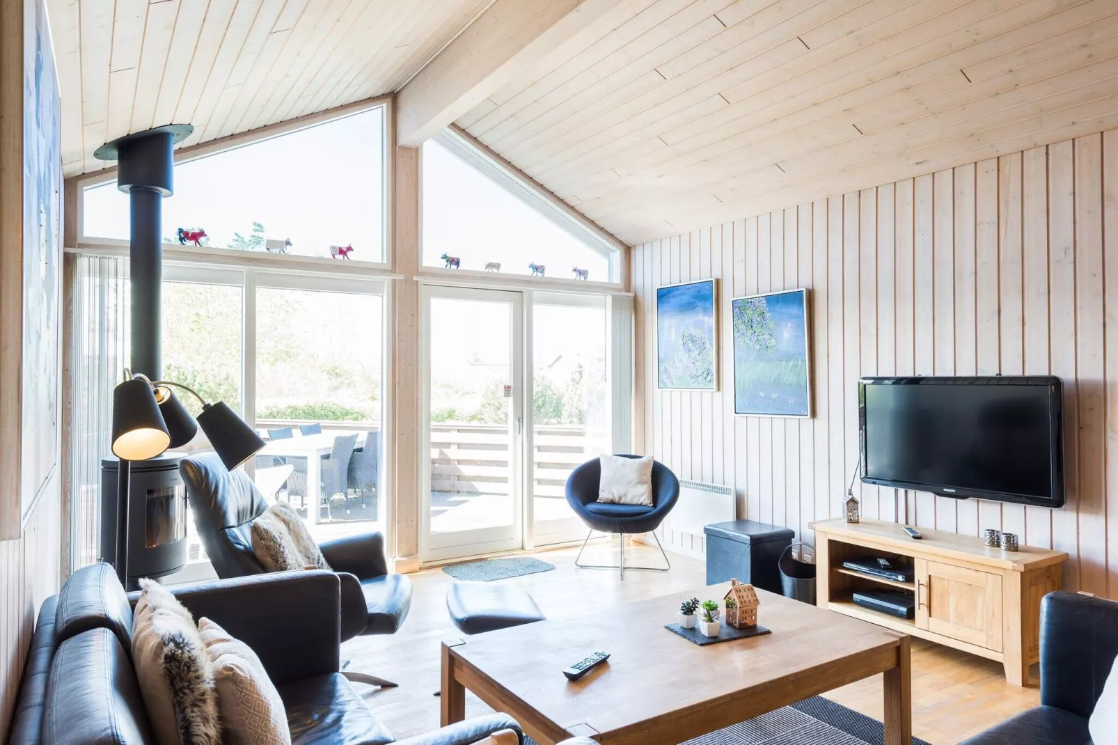 Wunderschönes, helles und geräumiges Ferienhaus mit richtig guter Einrichtung. Wohnzimmer und Küche stehen in offener Verbindung und sind - als Sammelpunkt für die ganze Familie - in der Mitte des Hauses plaziert. Alle Räume haben Decken bis zum Giebelund im Wohnzimmer ist ein Dachfenster - das gibt wunderbares Licht, egal ob Sommer oder Winter. Ausserdem hat das Haus eine schöne, grosse Holzterasse mit Aussicht über die Umgebung. Das Grundstück ist gut geeignet für alle möglichen Spiele/Ballspiele. Endreinigung ist im Preis enthalten!
