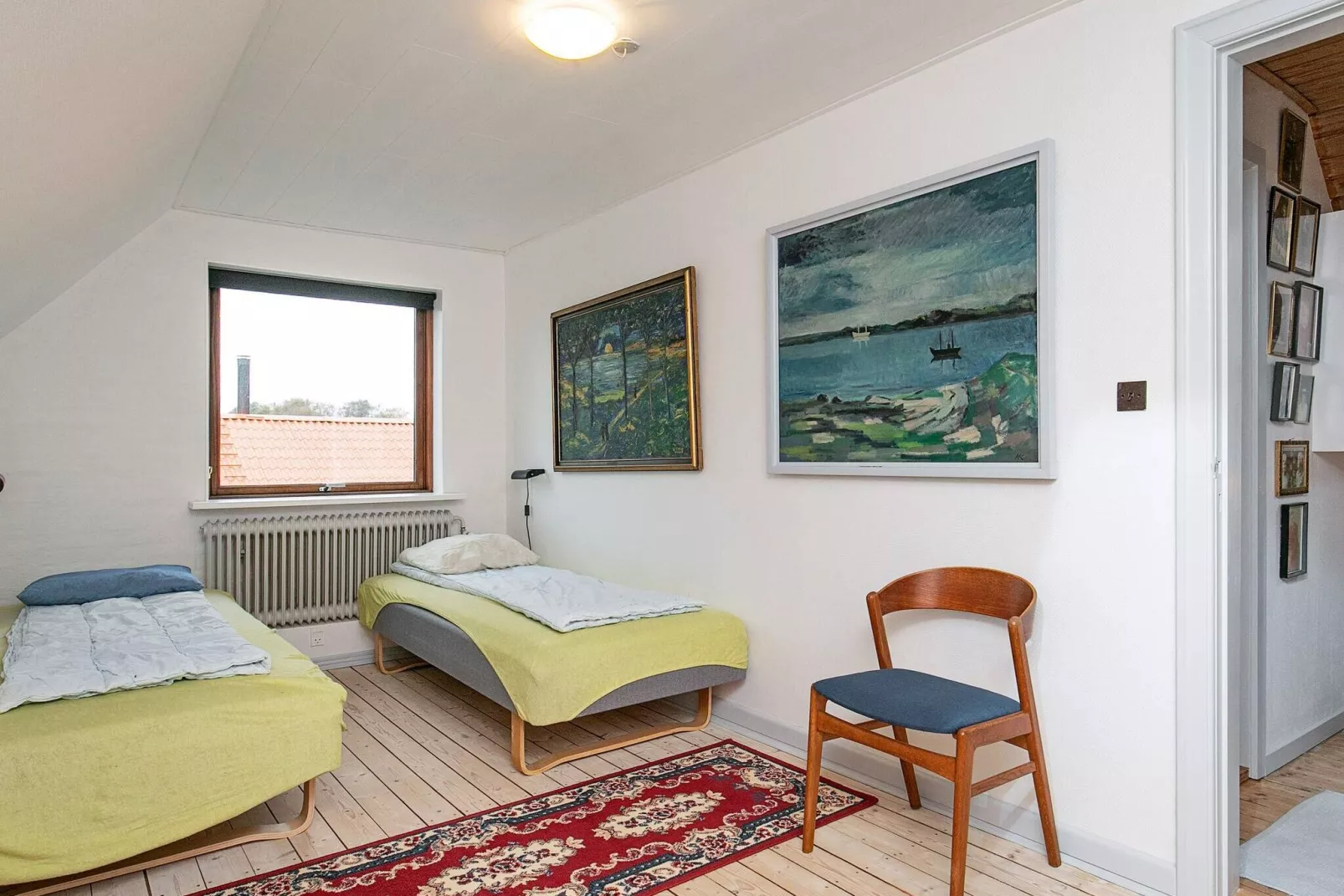 Vanuit de entree in de begane grond heeft u toegang tot de praktische bijkeuken met wasmachine en verder naar de open keuken-/woonruimte voor het gezinsleven, uitgerust met onder andere een eethoek, houtkachel, WiFi en Duitse zenders om uit te kiezen op de tv. Aansluitend ligt een slaapkamer met een tweepersoonsbed. De gang leidt verder naar de badkamer met douche/WC. In de gang is ook een trap naar de bovenverdieping, waar zich twee kleinere slaapkamers met elk twee eenpersoonsbedden bevinden, evenals een grotere slaapkamer met een tweepersoonsbed en opbergruimte. Vanuit de grotere slaapkamer heeft u een mooi uitzicht op de kleine haven en de zee.