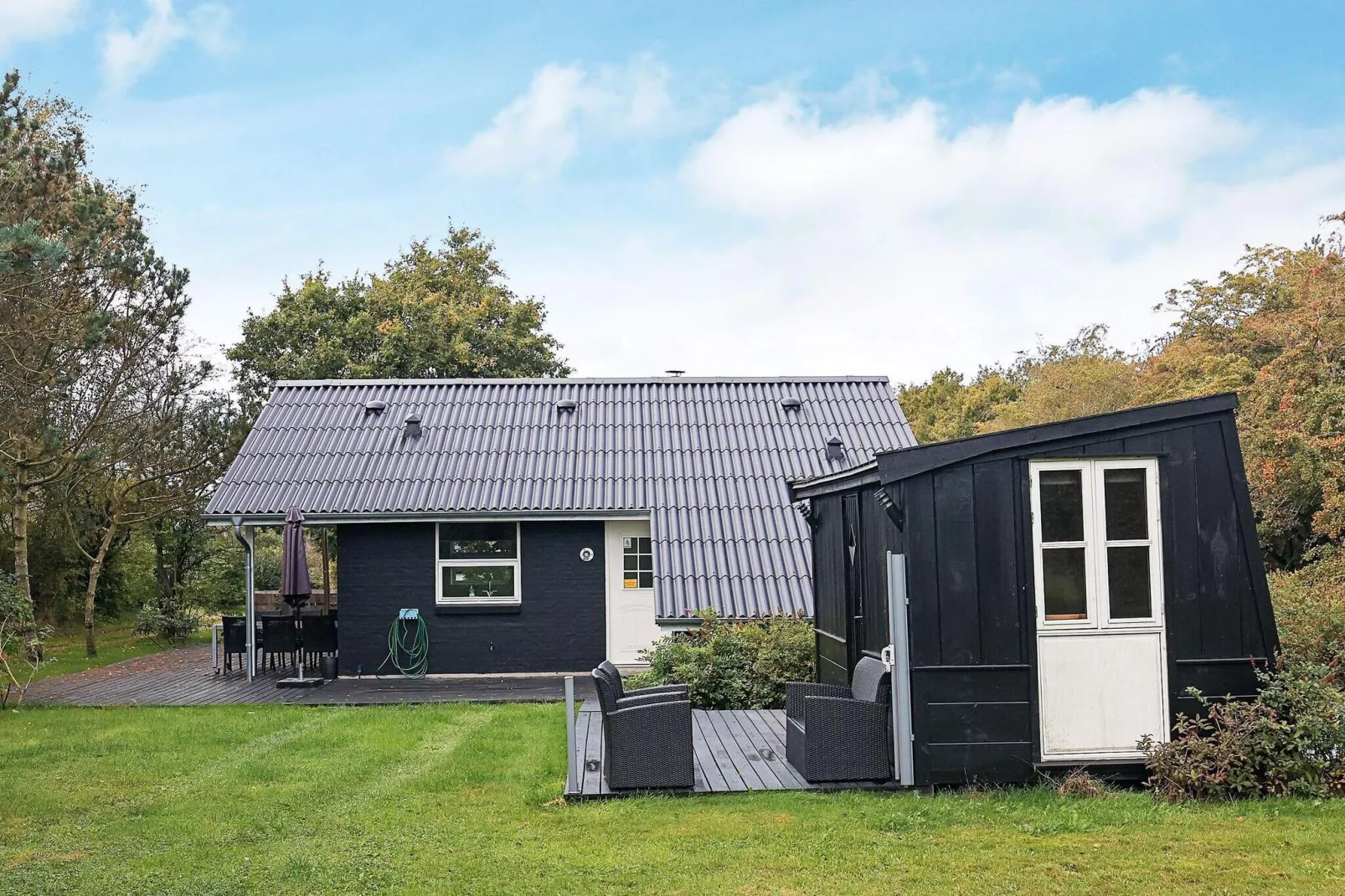 Het vakantiehuis heeft een gecombineerde woonkamer met keuken, eethoek, zithoek, tv en houtkachel. De keuken heeft een grote koelkast, maar geen vriezer. De oven is een vrijstaand tafelmodel in iets kleinere afmetingen.