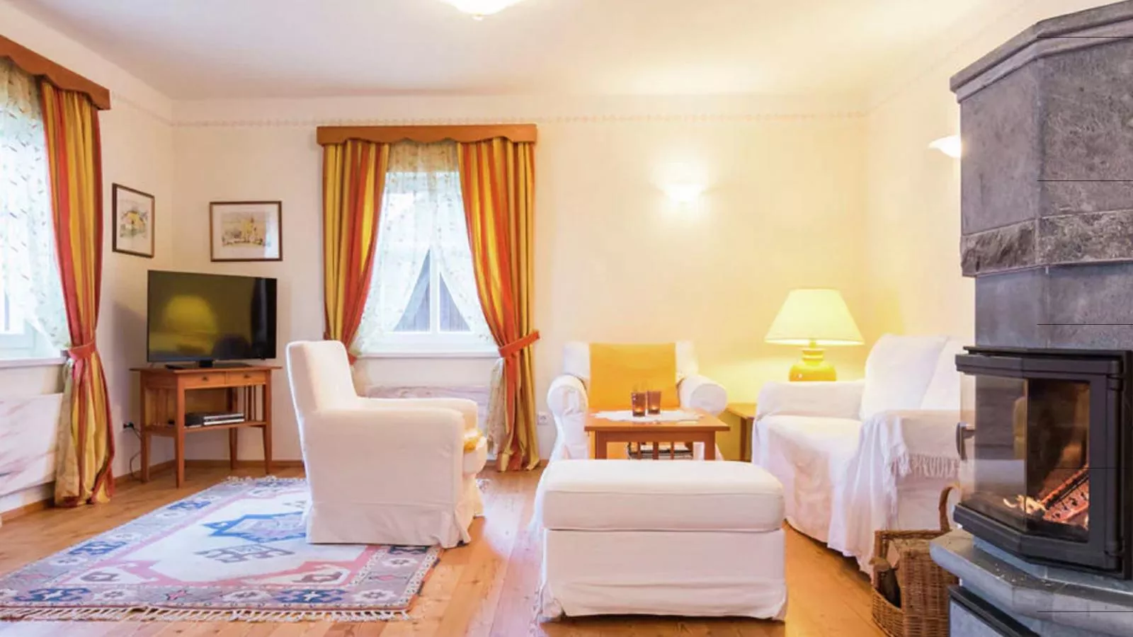 Er is een open haard in de zeer ruime woonkamer, het hout wordt geleverd door de verhuurder.