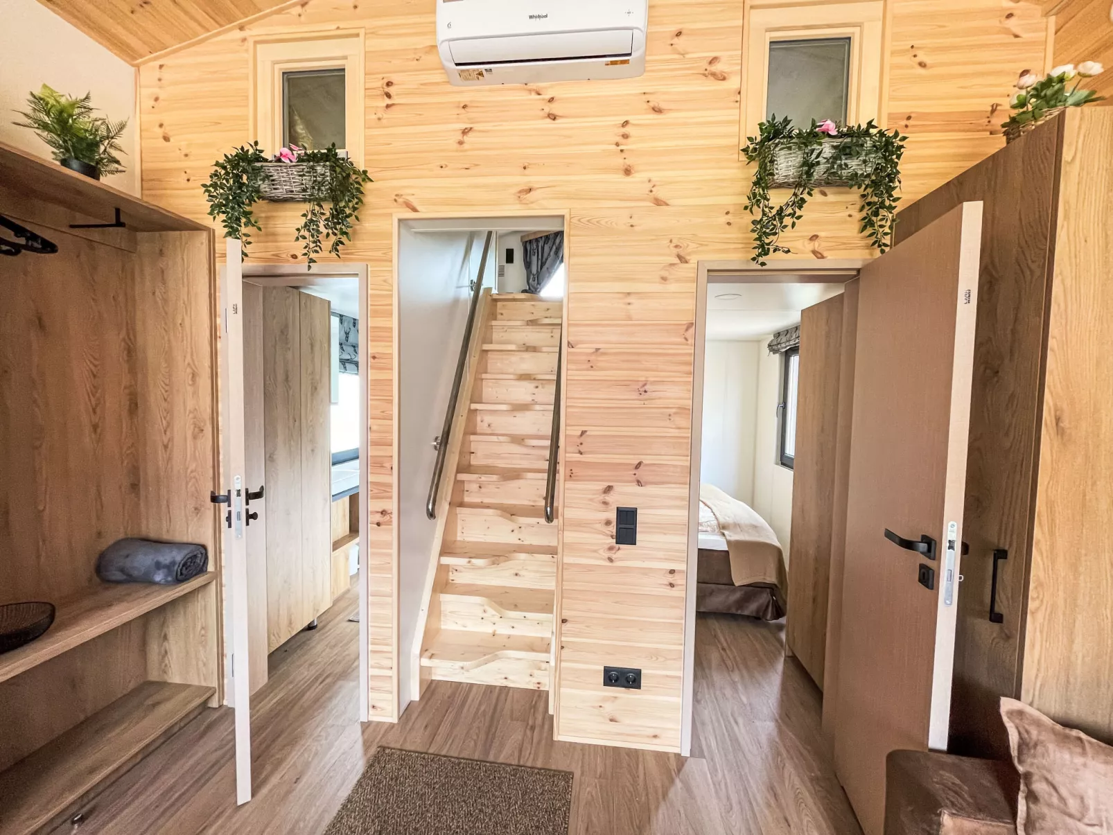 "Tiny Haus Glockenalm-Chalet Wendelstein", 3-kamers mobilhome 33 m2 op 2 verdiepingen. Het objekt is geschikt voor 2 volwassenen + 3 kinderen. Smaakvol en gezellig ingericht: woon-/eetkamer met Sat-TV en air-conditioning. 1 kamer met 1 2-pers bed (160 cm, lengte 200 cm). Open keuken (2 keramische glas kookplaten, waterkoker, elektrische koffiemachine). Douche/WC. Bovenverdieping: (steile trap), 1 open kamer met afgeschuinde daken, hoogte van het plafond 50 - 110 cm met 3 slaapplaatsen (3 x 80 cm, lengte 200 cm). Elektrische verwarming. Terras. Terrasmeubelen. Mooi uitzicht op de bergen. Parkeerplaats (1 Auto) bij het huis. Rookmelders.