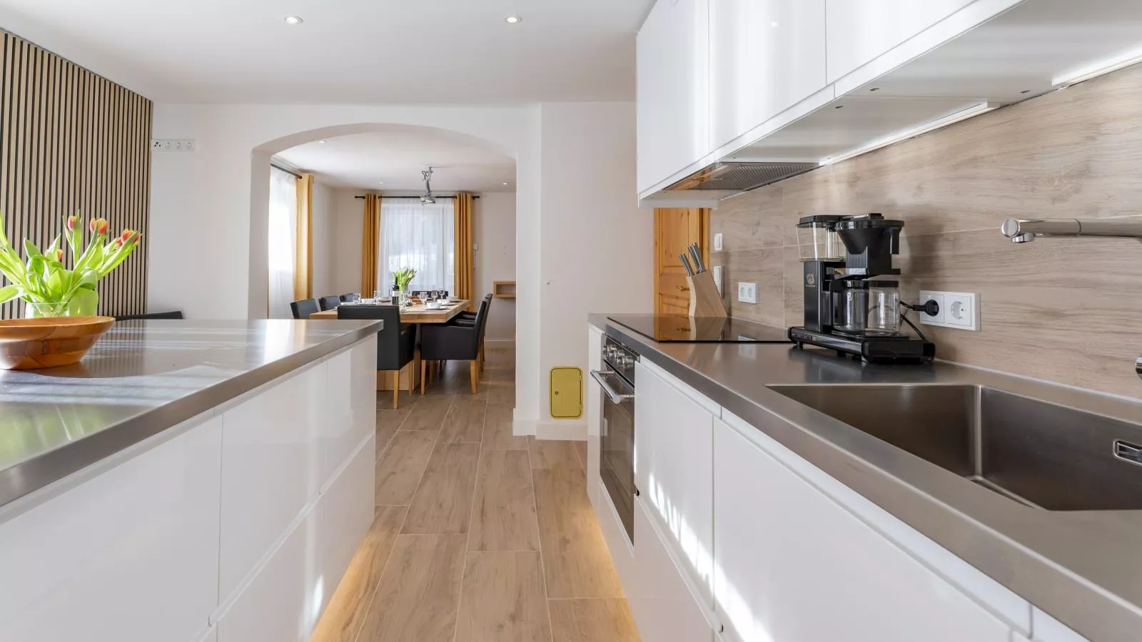 Het charmante chalet biedt comfortabel plaats aan families en/of vriendengroepen. Het strekt zich uit over de begane grond (bereikbaar via een trapje omlaag) en de eerste verdieping (bereikbaar via een trapje omhoog). De sfeervol ingerichte slaapkamers zijn elk voorzien van een eigen moderne badkamer, voor maximale privacy en comfort. Geniet van gezellige avonden in de grote woonkeuken en bereid je favoriete maaltijden onder het genot van een glas wijn!