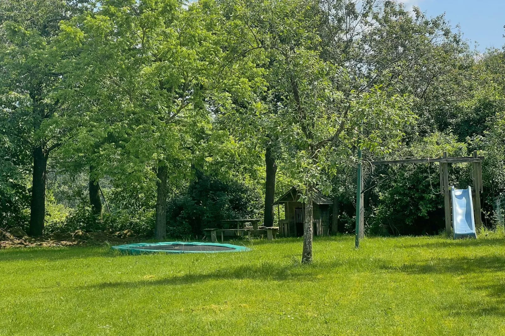 Ommuurde chalet voor 10 pers., gelegen aan de rand van Hampteau, met prachtig uitzicht over het Ourthedal. Gelijkvloers: ruime L-vormige woonkamer (houtkachel, SMART TV, DVD) en eethoek met open ingerichte keuken (4 elektrische kookplaten, combi magnetron met grill en oven functie, oven, vaatwasser, koel-vrieskast), 1 slaapkamer (met hooglaag bed en 1 pers.bed). Badkamer bruikbaar voor rolstoeler, wasmachine. Tillift en douchebrancard beschikbaar. Aparte wc (rolstoel toilet). Verdieping: 3 grote slaapkamers, badkamer met bad en douche. Aparte wc. Elektr. verwarming. Zeer grote tuin (16 acres) met tuinmeubelen, barbecue en volleynet. Terras op het zuiden. Garage met tafeltennis. Bedden: 6 x 1 pers. + 2 x 2 pers. + kinderstoel.