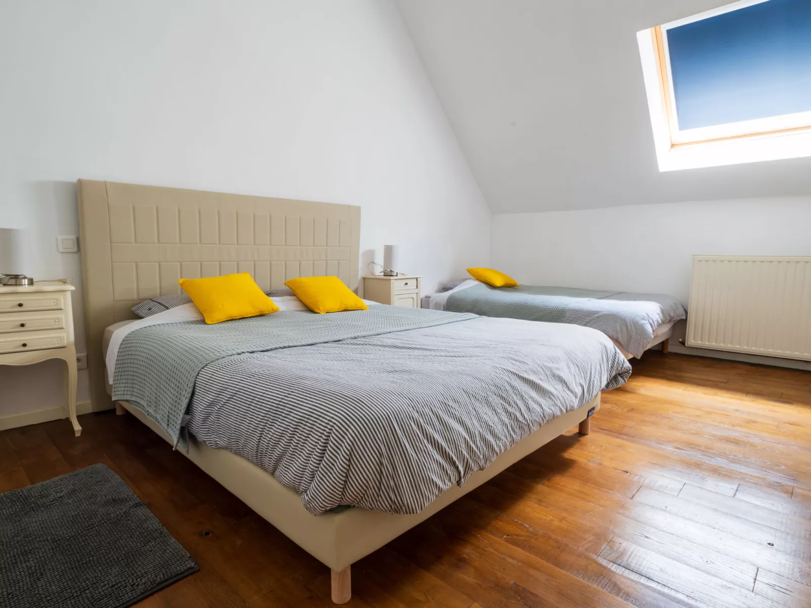 Huis in een rij 5-kamers 120 m2. Ruim en licht, comfortabel en mooi ingericht: hal. Groot woon-/eetkamer met eettafel en TV (Flatscreen TV). Uitgang naar de veranda. Open keuken (oven, afwasmachine, 4 keramische glas kookplaten, broodrooster, waterkoker, magnetron, diepvriezer, elektrische koffiemachine, kookeiland). Uitgang naar de veranda. Douche/WC. Bovenverdieping: 1 kamer met afgeschuinde daken met 1 2-pers bed (160 cm, lengte 200 cm). 1 kamer met afgeschuinde daken met 1 bed (120 cm, lengte 190 cm), 1 2-pers bed (160 cm, lengte 200 cm). Badkamer, aparte WC. 2e Verdieping: (steile trap), 1 kamer met afgeschuinde daken met 1 bed (90 cm, lengte 190 cm). Olie-verwarming. Natuurstenen vloeren. Groot terras 30 m2, overdekt. Terrasmeubelen. Ter beschikking: wasmachine, strijkijzer, kinderstoel, kinderbed tot 3 jaar, haardroger. Internet (Internet (WiFi), gratis). Geschikt voor families. Rookvrij huis. Maximaal 1 huisdier/hond toegestaan. Rookmelders. Aanbod door een particulier volgens art. 155, IV van CGI.