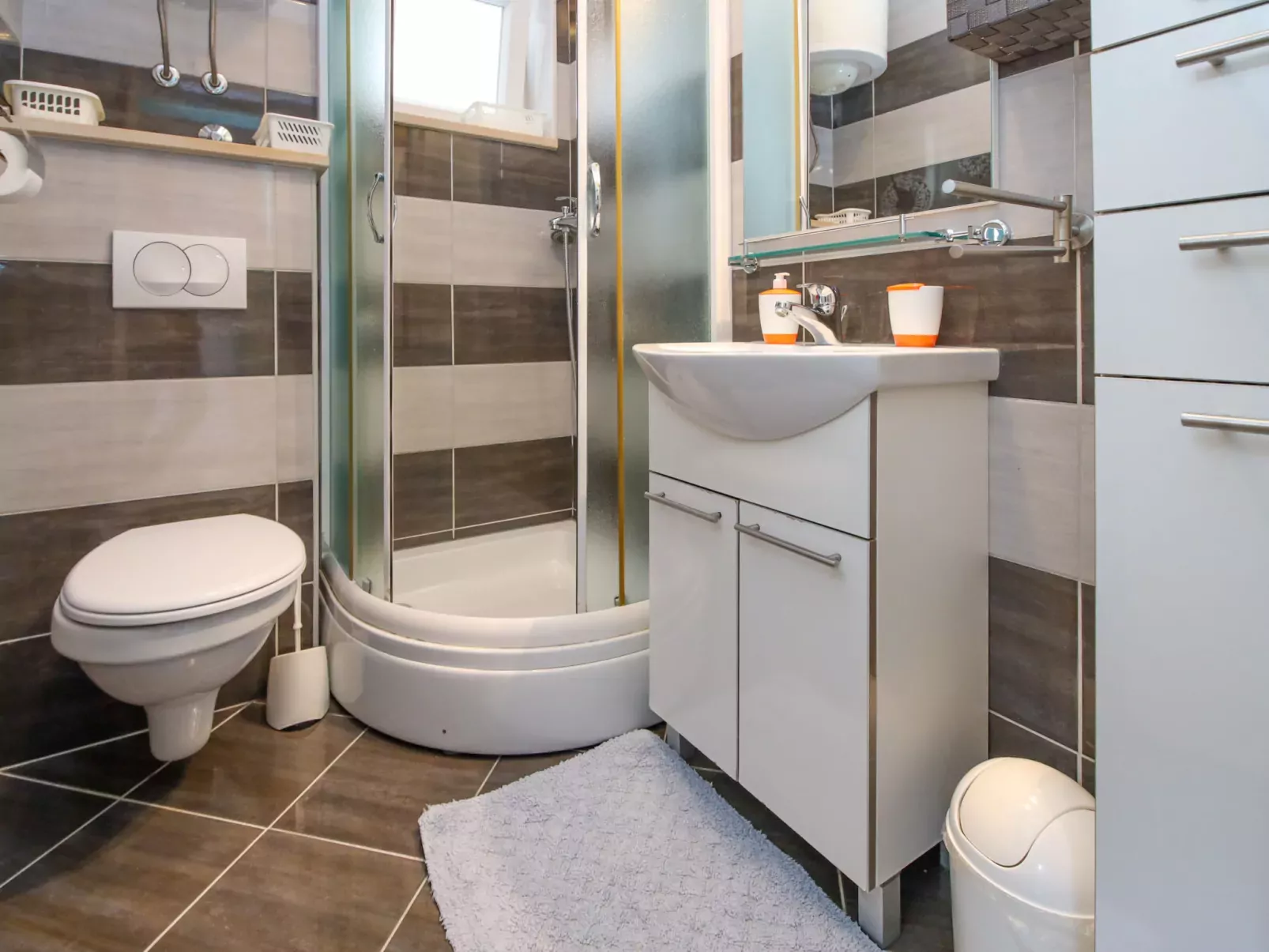 "Ana", halfvrijstaand huis 6-kamers 100 m2 op 2 verdiepingen. Woon-/eetkamer met 1 divanbed, Sat-TV en air-conditioning. 1 kamer met 1 2-pers bed. 1 kamer met 2 bedden. Open keuken (4-pits kookplaat, oven, afwasmachine, broodrooster, elektrische koffiemachine). Douche/WC. Bovenverdieping: (buitentrap) woon-/eetkamer met 1 divanbed, Sat-TV en air-conditioning. Uitgang naar het balkon. 1 kamer met 1 2-pers bed. 1 kamer met 2 bedden. Open keuken (4-pits kookplaat, oven, broodrooster, elektrische koffiemachine). Douche/WC. Geen verwarmingsmogelijkheid. 2 balkons, terras. Terrasmeubelen, balkonmeubilair. Uitzicht op zee. Ter beschikking: Internet (Internet (WiFi), gratis). Rookvrij huis. De accommodatie bestaat uit 2 appartementen die gehuurd worden als 1 geheel.