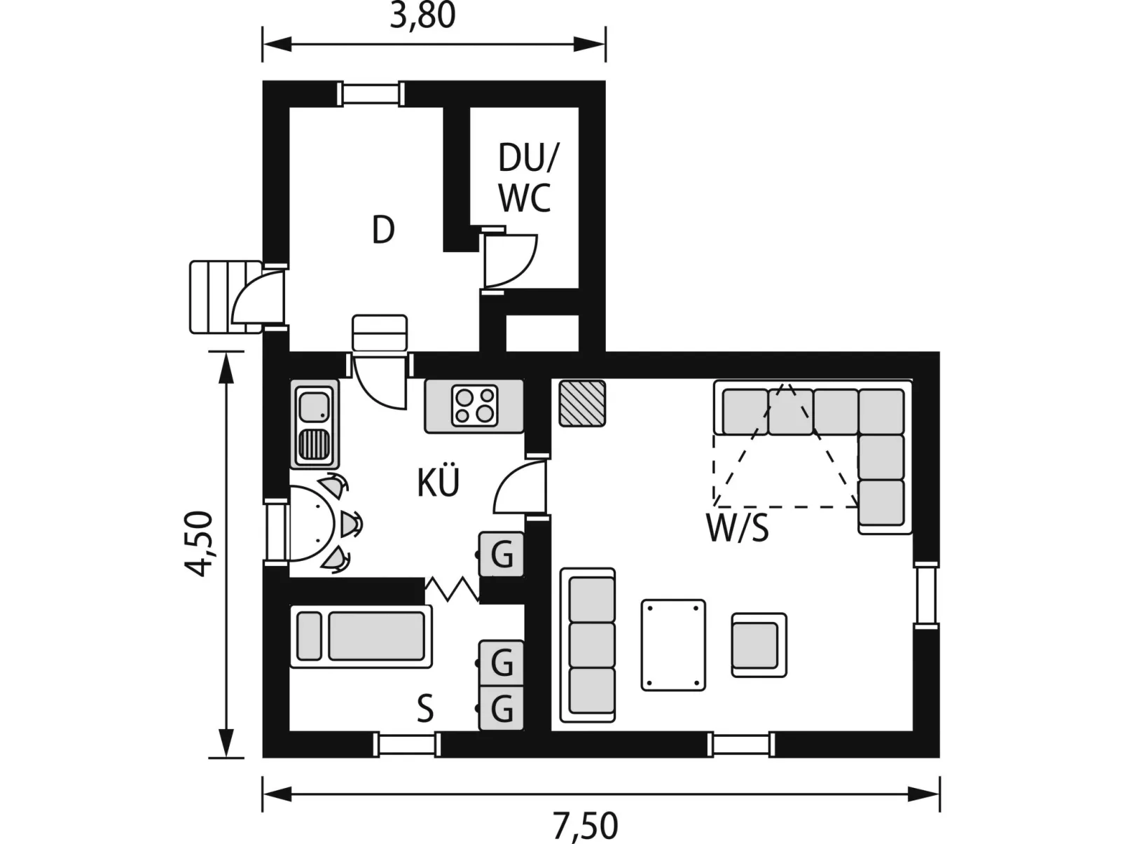 "Angsjö Torp", huis 1-kamer 40 m2. Licht, mooi ingericht: woon-/slaapkamer, hoogte van het plafond 180 - 190 cm, lage deurhoogte, 170 cm met 1 2-pers divanbed, zwedenkachel en Sat-TV. Open woon-/slaapkamer, hoogte van het plafond 180 - 190 cm, lage deurhoogte, 170 cm met 1 bed. Kleine keuken (oven, 4 keramische glas kookplaten, broodrooster, waterkoker, magnetron, diepvriezer, elektrische koffiemachine) met eettafel. Souterrain: douche/WC. Elektrische verwarming. Zithoek in de tuin. Terrasmeubelen, barbecue (verrijdbaar). Ter beschikking: wasmachine, strijkijzer.