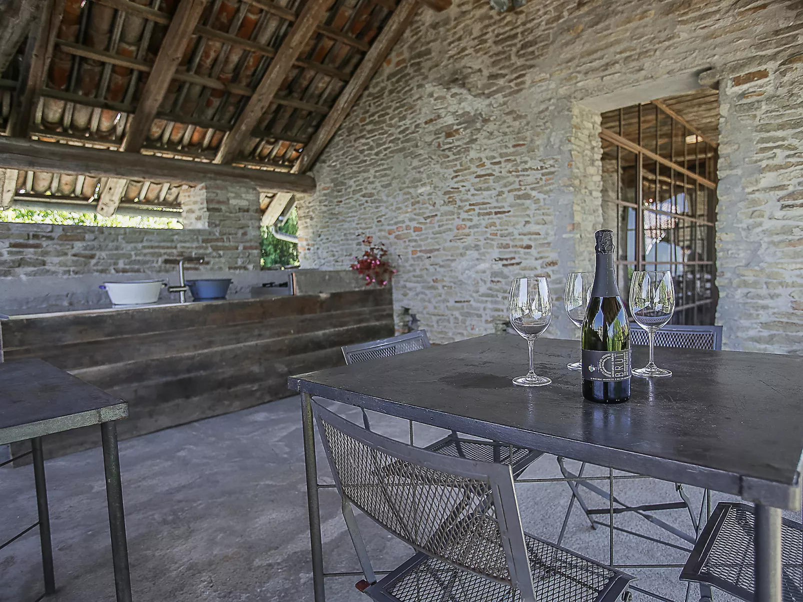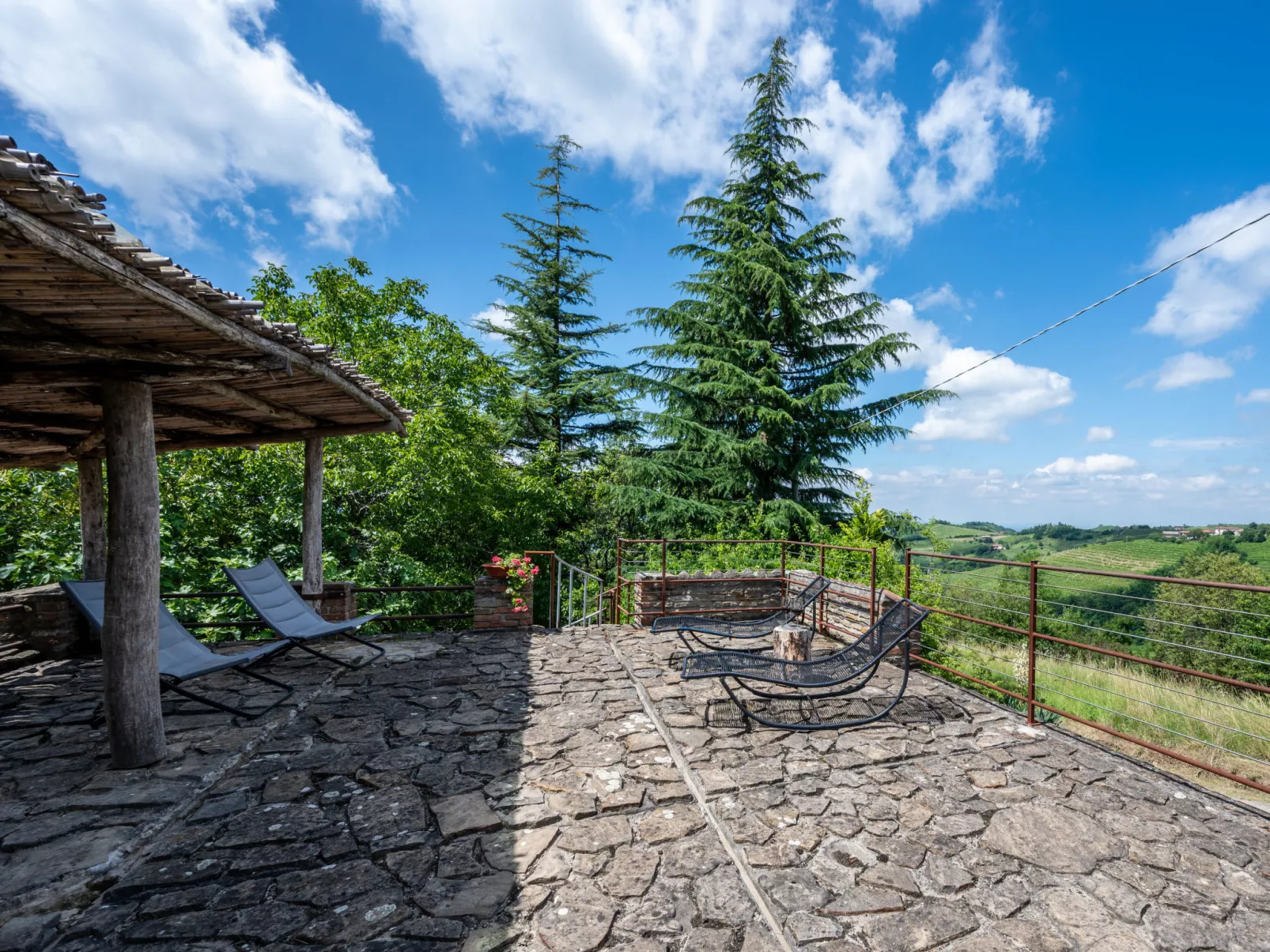 Trezzo Tinella 10 km van Alba: Groot, historisch herenhuis "Borgo del Riondino", 550 m boven zeeniveau, uit de 15e eeuw, gerenoveerd, omgeven door velden en wijngaarden. 3 huizen in de plaats. 3 km van het centrum van Trezzo Tinella, 8 km van het centrum van Neive, 11 km van het centrum van Barbaresco, geïsoleerde, rustige ligging, 75 km van zee, te midden van groen. Voor alleengebruik: park 10 ha met planten en bomen, overdekt zwembad (13 x 4 m, 140 cm diepte, seizoensgebonden beschikbaarheid: 01.Jun. - 15.Sep.). Douche/WC bij het zwembad. Verwarming ter plaatse te betalen, verwarming alleen beschikbaar van 15.Okt. - 15.Apr.. Parkeerplaats op het terrein. Winkel 8 km, supermarkt 8 km, restaurant 2.5 km, bushalte 13 km. Attracties in de buurt: Langhe - Barolo 10 km, Asti 30 km, Bra 30 km, Cuneo 80 km. Auto noodzakelijk. De eigenaar woont op hetzelfde terrein. Het vakantiepark ligt tegenover een oude binnenplaats waar een biologisch wijnproducerend bedrijf is gelegen. In het park zijn 4 kleine meertjes, een picknickplaats en een jogging parcours.