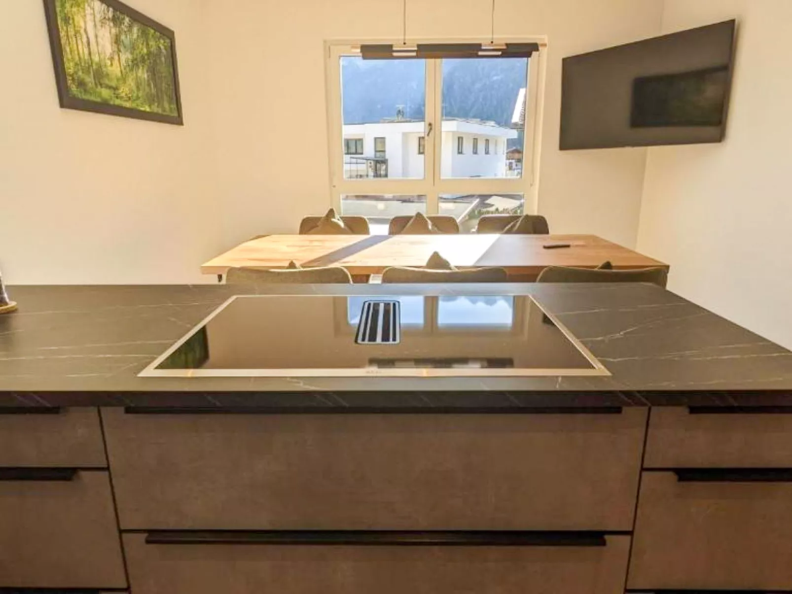 "Apart Andrea", maisonette 4-kamers 140 m2 op 2 verdiepingen op de 2e verdieping. Het objekt is geschikt voor 6 volwassenen + 2 kinderen. Comfortabel ingericht: hal. Woonkamer met Sat-TV (Flatscreen TV). Keuken (oven, afwasmachine, 4 inductiekookplaten, broodrooster, waterkoker, diepvriezer, elektrische koffiemachine, pads voor de koffiemachine (Nespresso) extra) met eettafel, Sat-TV (Flatscreen TV). Aparte WC. Vloerverwarming. Bovenverdieping: 2 2-pers. kamers, elke kamer heeft Sat-TV (Flatscreen TV). 1 kamer met 1 2-pers divanbed, 1 2-pers bed en Sat-TV (Flatscreen TV). Uitgang naar de loggia. Bad/douche, aparte WC, dubbele wastafels, hydro massage bad, Sauna. Vloerverwarming. Parketvloeren. Balkonmeubilair.