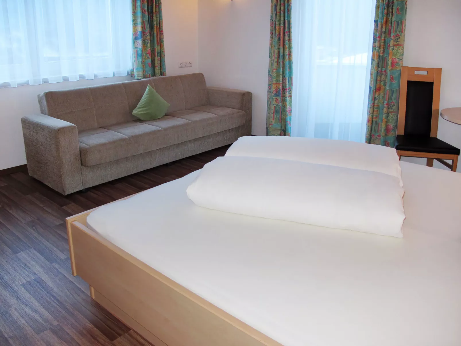 "Apart Garni Wachter", appartement 5-kamers 110 m2 op de 2e verdieping. Licht, modern ingericht: woon-/eetkamer met Sat-TV en radio. Uitgang naar het balkon. 2 2-pers. kamers, elke kamer heeft douche/WC en Sat-TV. 2 kamers, elke kamer heeft 1 divanbed, 1 2-pers bed, douche/WC en Sat-TV. Open keuken (oven, afwasmachine, 4 keramische glas kookplaten, broodrooster, waterkoker, magnetron, elektrische koffiemachine, pads voor de koffiemachine (Nespresso) extra). 2 balkons. Terrasmeubelen. Ter beschikking: haardroger. Internet (WiFi, gratis). Niet rokers woning. Rookmelders, brandblusser. Als er minder dan het maximale aantal gasten in de accommodatie verblijft, zijn niet alle slaapkamers beschikbaar voor gebruik.