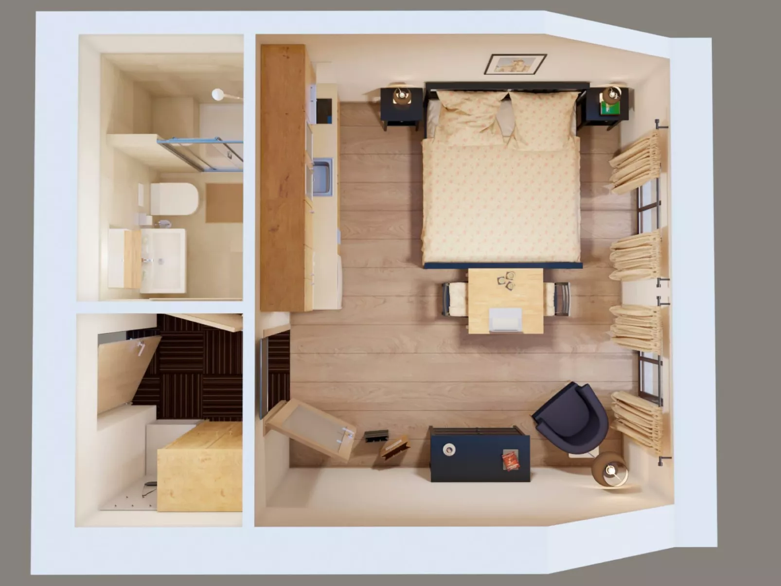 "Arnoltice 9", appartement 1-kamer op de 1e verdieping. Hal. Woon-/slaapkamer met 1 2-pers bed en Sat-TV. Kookhoek (2 keramische glas kookplaten, broodrooster, waterkoker, magnetron) met eettafel. Douche/WC. Uitzicht op de tuin. Ter beschikking: Internet (Internet (WiFi), gratis). Geschikt voor families. Niet rokers woning.