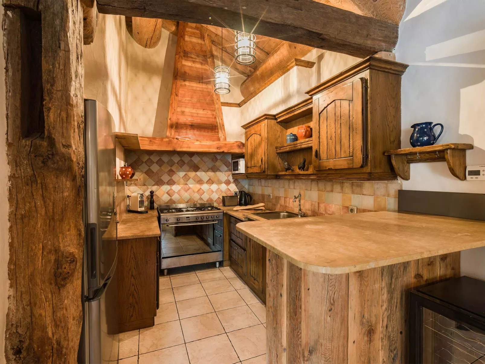 "Arosa", chalet 6-kamers 200 m2 op 4 verdiepingen. Smaakvol en met veel hout ingericht: berging. Bovenverdieping: 2 kamers, elke kamer heeft 1 2-pers bed en bad/WC. 2 kamers, elke kamer heeft 1 2-pers bed en bad/WC. Uitgang naar het balkon. 2e Verdieping: woon-/eetkamer met open haard en eettafel. Uitgang naar het balkon. 1 kamer met 1 2-pers bed en douche/WC. Open keuken (oven, afwasmachine, 4 keramische glas kookplaten, broodrooster, waterkoker, diepvriezer, elektrische koffiemachine, raclette oven). 3e Verdieping: open galerij met afgeschuinde daken met Sat-TV. Elektrische verwarming. Houten vloeren, natuurstenen vloeren. 3 balkons. Mooi uitzicht op de bergen. Ter beschikking: wasmachine, droger. Internet (WiFi, gratis). Rookvrij huis. In plaats van een afgesloten slaapkamer bevinden sommige slaapgedeeltes zich in een open ruimte (galerij, nis, etc.).