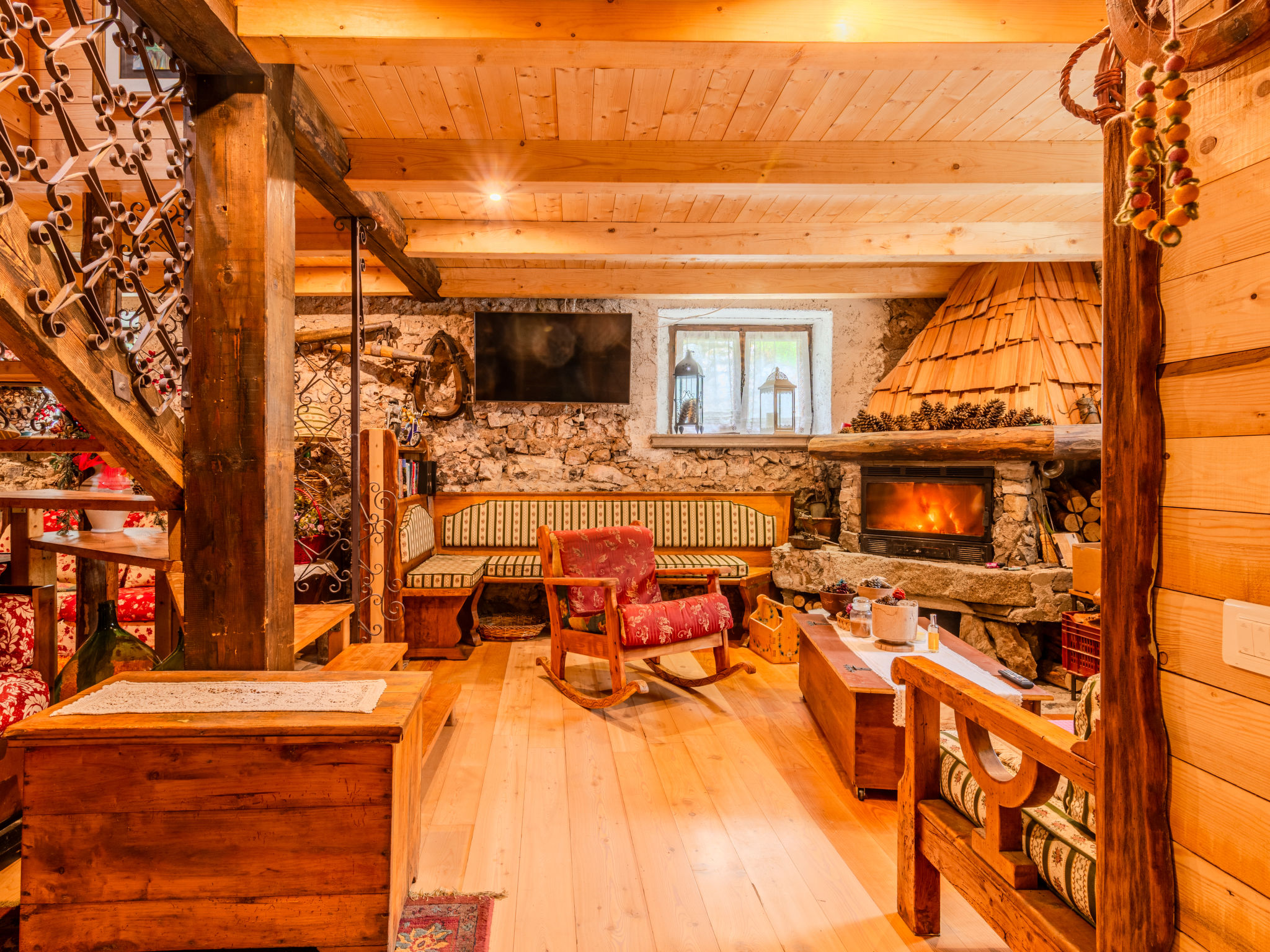 CERANA 1 km van TRE VILLE: Zeer gezellig, rustieke chalet "Baita Ballardini", van 2 verdiepingen, vrijstaand, omgeven door bomen en weiden. In de wijk Cerana, 2 km van het centrum van Ragoli, geïsoleerde, zonnige ligging op een heuvel, 20 m van de bosrand, 25 m van het meer, 22 km van het skigebied, 2 km van de rivier, in het bos, op het zuidoosten. Voor medegebruik: wild terrein, ligweide, mooie tuin ter ontspanning. In het huis: bergruimte voor fietsen, berging voor ski's, alarmsysteem, wasserette (extra). Wissel van linnengoed 1 maal per week (extra wissel te betalen). Wissel van handdoeken 1 maal per week (extra wissel te betalen). 1 maal per week schoonmaak op verzoek (extra). Huishoudelijke hulp op verzoek (extra). Kok op verzoek. Broodjesservice en ontbijt op verzoek op aanvraag (extra). Berging beschikbaar. Parkeerplaats (voor 3 auto's) bij het huis. Levensmiddelenwinkel 1 km, supermarkt 1 km, restaurant 1 km, bar 1 km, voetgangersgebied 1 km, fietsverhuur 1 km, bushalte 1 km, treinstation "Trento" 55 km, rotsstrand "Fiume Sarche" 2 km, meer di Garda 35 km. Wandelroutes 10 m vanaf het huis, fietspad 1 km, skipisten 22 km, skiverhuur 22 km. Attracties in de buurt: Bolbenolandia Ski Family Park 7 km, Caderzone Golf Club and Therme 17 km, Palestra di Roccia Preore 5.1 km, Valle del Chiese 22 km, Stazione dei Bus di Tione 5.7 km, Città di Trento 45 km. Bekende skigebieden kunnen gemakkelijk worden bereikt: Pista da Scii di Bolbeno 7 km, Madonna di Campiglio 35 km, Pinzolo 30 km. Bekende meren kunnen gemakkelijk worden bereikt: Lago di Garda 30 km, Lago di Molveno 20 km. Wandelgebied Cycle Lane Madonna di Campiglio-Riva D.G 3 km, Sentieri Ferrati delle Falesie 9 km. Bewaakt vakantiecomplex. De eigenaar woont op hetzelfde terrein. Eigenaar maakt gebruik van de ruimtes in het huis.