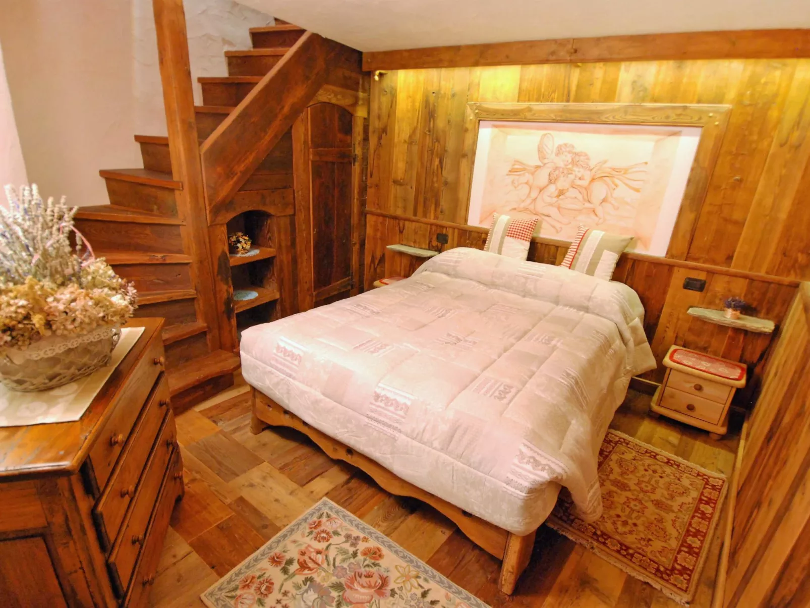 Appartement 3-kamers 50 m2 op 2 verdiepingen. Gedeeltelijk afgeschuinde daken, volledig gerenoveerd in 2016, comfortabel en met veel hout ingericht: woon-/eetkamer met open haard, eettafel en TV (Flatscreen TV). Doorgangskamer met 1 2-pers bed. Kookhoek (4 inductiekookplaten, magnetron). Douche/bidet/WC. Bovenverdieping: 1 kamer met 1 x 2 stapelbedden. Uitgang naar het balkon. Parketvloeren, natuurstenen vloeren. Ligstoelen. Uitzicht op de bergen en het dal. Ter beschikking: haardroger, haardhout (gratis). Niet rokers woning. Privé ingang. IT007006C2NJ5FF3MW