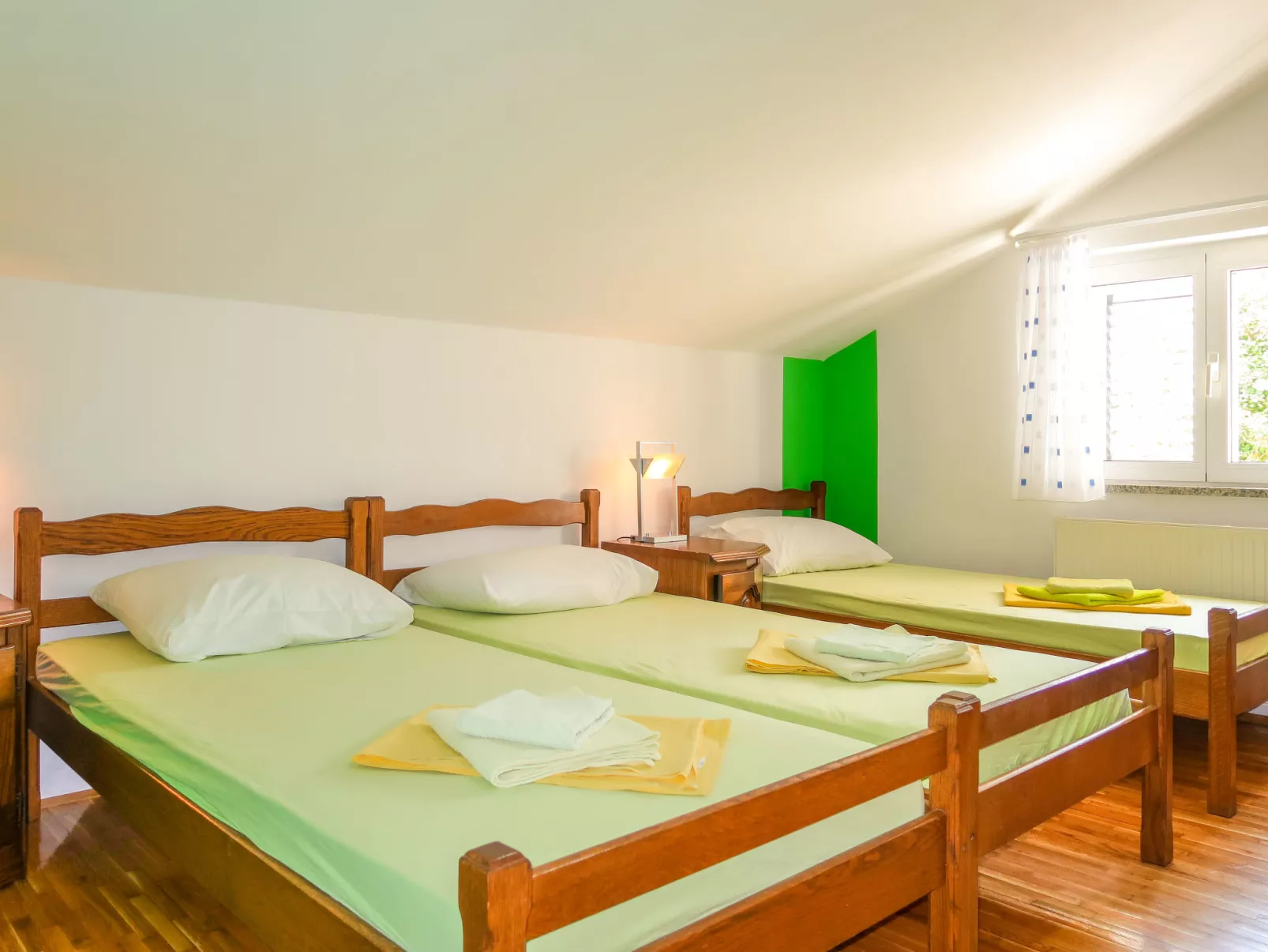 "Blekic", appartement 3-kamers 60 m2 op de 1e verdieping. Woon-/eetkamer met afgeschuinde daken met 1 divanbed, Sat-TV en air-conditioning. Uitgang naar het terras. 1 kamer met afgeschuinde daken met 3 bedden (90 cm, lengte 200 cm). 1 kamer met afgeschuinde daken met 2 bedden (90 cm, lengte 200 cm). Open keuken (2 keramische glas kookplaten, broodrooster, waterkoker, magnetron, elektrische koffiemachine). Douche/WC. Geen verwarmingsmogelijkheid. Balkon. Balkonmeubilair. Uitzicht op zee. Ter beschikking: klamboe, kinderbed. Internet (Internet (WiFi), gratis). Parkeerplaats (2 Auto's). Rookvrij huis. Maximaal 3 huisdieren/honden toegestaan.