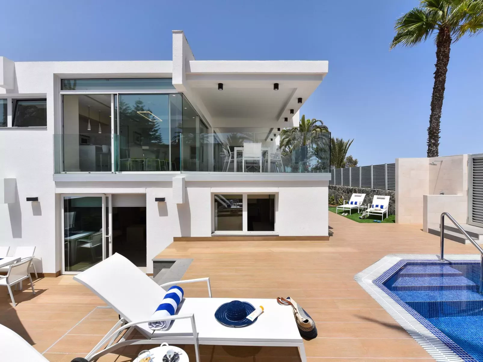Zeer moderne huis. In het centrum van Maspalomas, centrale ligging. Voor alleengebruik: openluchtzwembad hoekig, verwarmd (120 - 120 cm diepte, seizoensgebonden beschikbaarheid: 01.Jan. - 31.Dec.). Bushalte "Estación Faro de Maspalomas" 450 m.