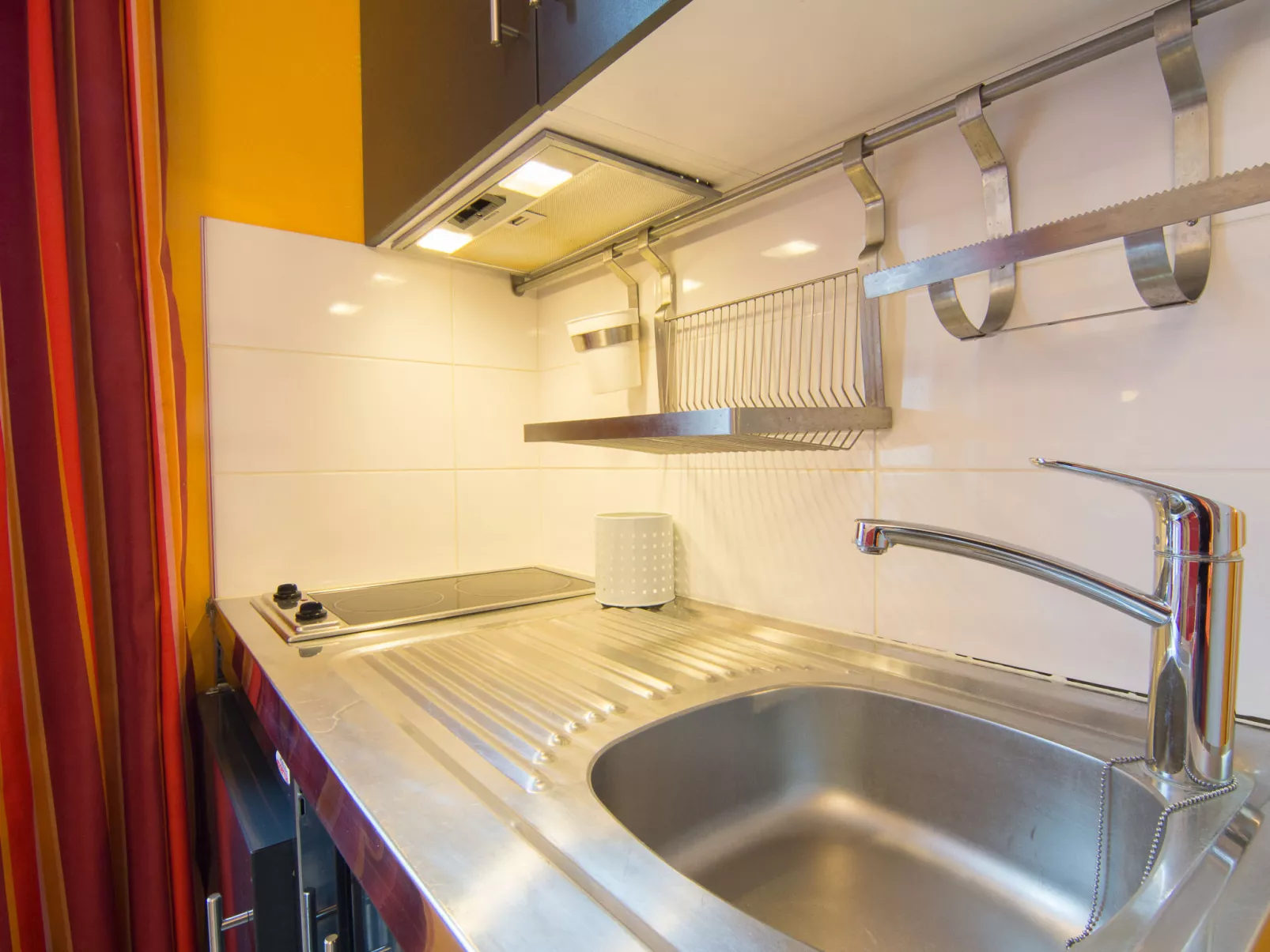 Maisonette 2-kamers 30 m2, op de tussenverdieping. Kleine woonkamer met TV (Flatscreen TV). Kookhoek (2-pits kookplaat, oven, afwasmachine, broodrooster, waterkoker, magnetron, elektrische koffiemachine). Aparte WC. Souterrain: 1 kamer met 1 divanbed (60 cm, lengte 180 cm), 1 2-pers bed (2 x 80 cm, lengte 200 cm). Douche. Elektrische verwarming. Ter beschikking: wasmachine, droger. Internet (Internet (WiFi), gratis). Niet rokers woning, geen parkeerplaats. Rookmelders.