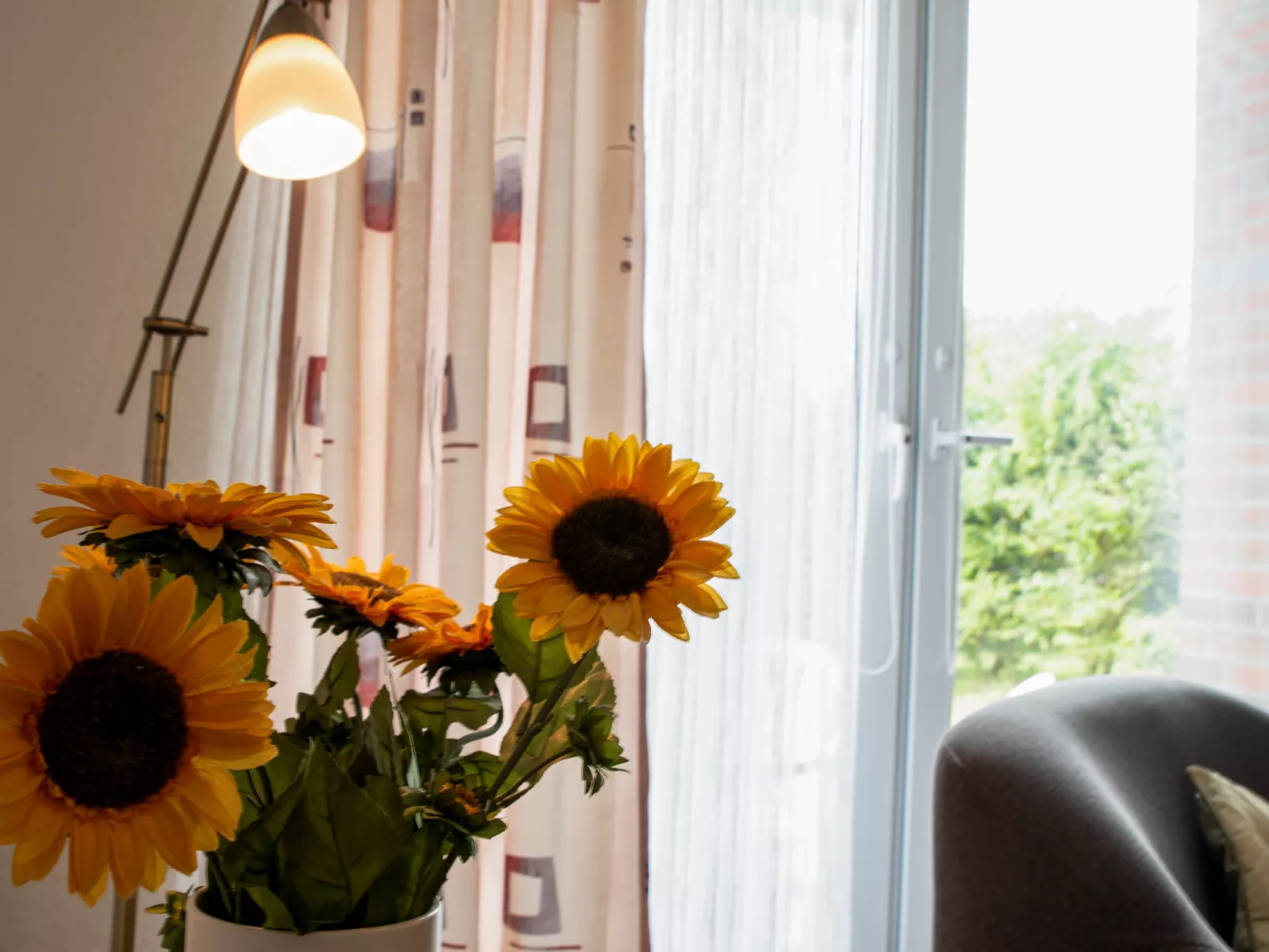 "Borkum", appartement 2-kamers 54 m2, op de begane grond. Ruim en licht: woonkamer 17 m2 met Sat-TV (Flatscreen TV), stereo-installatie. 1 kamer 9 m2 met 1 2-pers bed (2 x 90 cm, lengte 200 cm). Keuken 10 m2 (oven, afwasmachine, 4 keramische glas kookplaten, broodrooster, waterkoker, magnetron, diepvriezer, elektrische koffiemachine) met eettafel, radio. Douche/WC. Terras 15 m2, gazon. Terrasmeubelen. Mooi uitzicht op. Ter beschikking: kinderstoel (extra). Internet (Internet (WiFi), gratis). Niet rokers woning. Rookmelders.