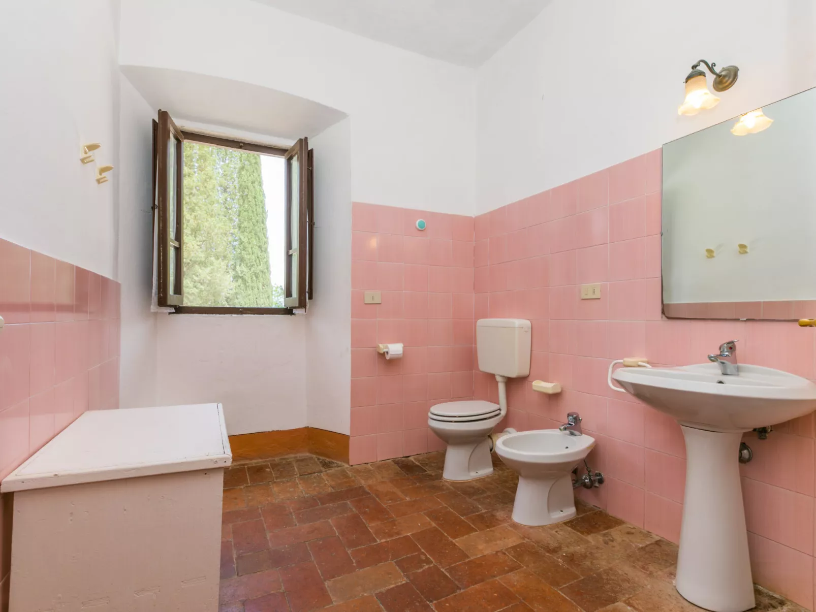 Landhuis "Buca dei Merli", uit de 17e eeuw. 2 km van het centrum van Pergine Valdarno, 4 km van het centrum van Laterina, 8 km van het centrum van Levane, te midden van groen. Voor alleengebruik: terrein 200 m2 (omheind), wilde tuin, weide, openluchtzwembad (verhoogd) (9 x 4 m, seizoensgebonden beschikbaarheid: 30.Mei. - 19.Sep.). Toegangsweg (3 km onverharde weg). Parkeerplaats op het terrein. Winkel 4 km, supermarkt 8 km, bushalte 2 km. Attracties in de buurt: Castello di Montozzi, Arezzo 20 km, Cortona 45 km, Firenze 65 km. Auto noodzakelijk.