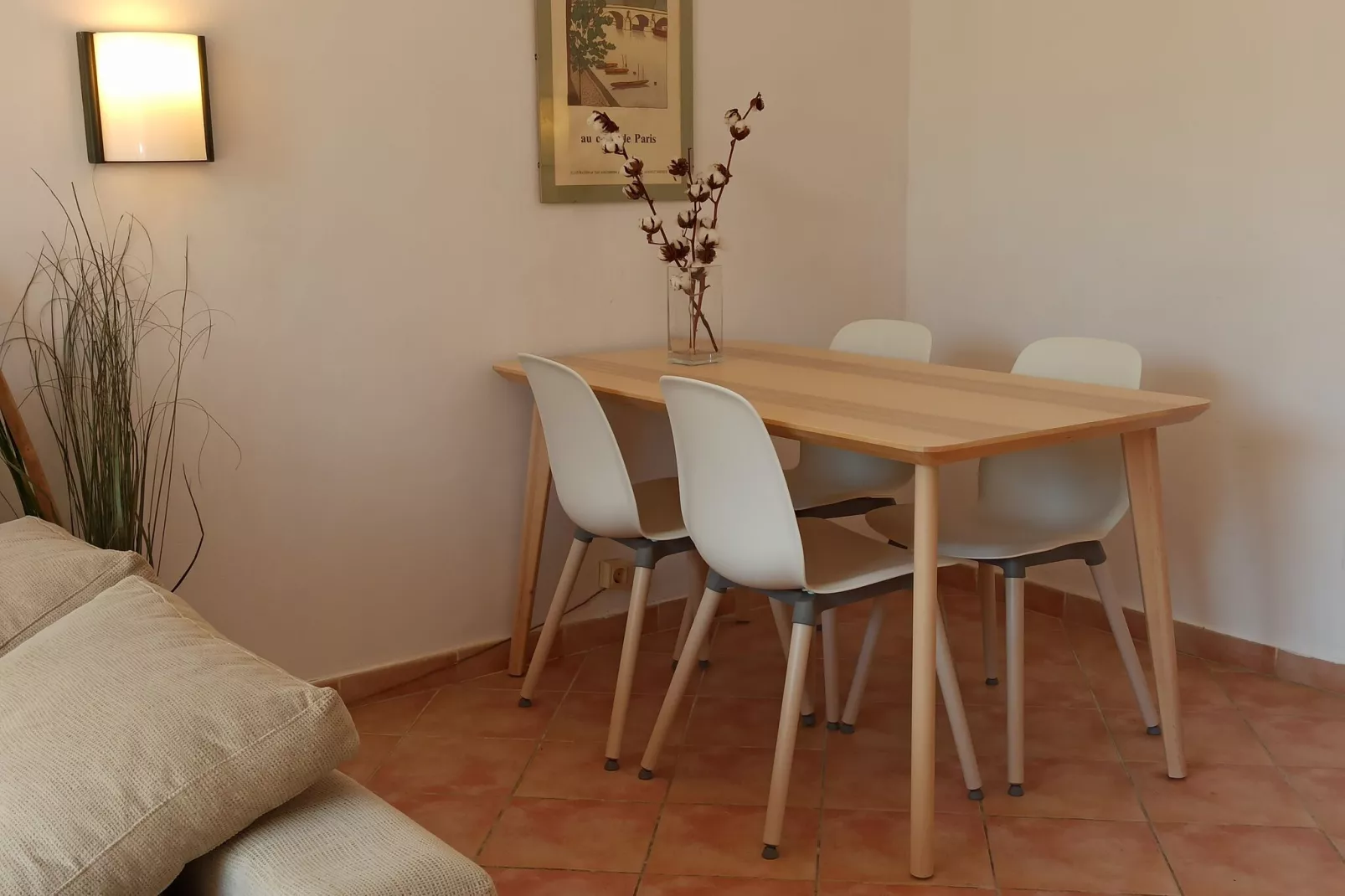 Inside the apartment you will find a spacious, modern and beautiful room, with air conditioning, which combines the kitchen, dining room and living room. Here you can prepare good dishes on the ceramic hob, eat all together and relax on the sofa watching TV-SAT. There are two bedrooms with a wardrobe, one with two single beds and the other with a double bed. Only the double room has air conditioning. There is a cot and a high chair for a baby. The bathroom in the house has a bathtub. There is a washing machine, iron and ironing board.