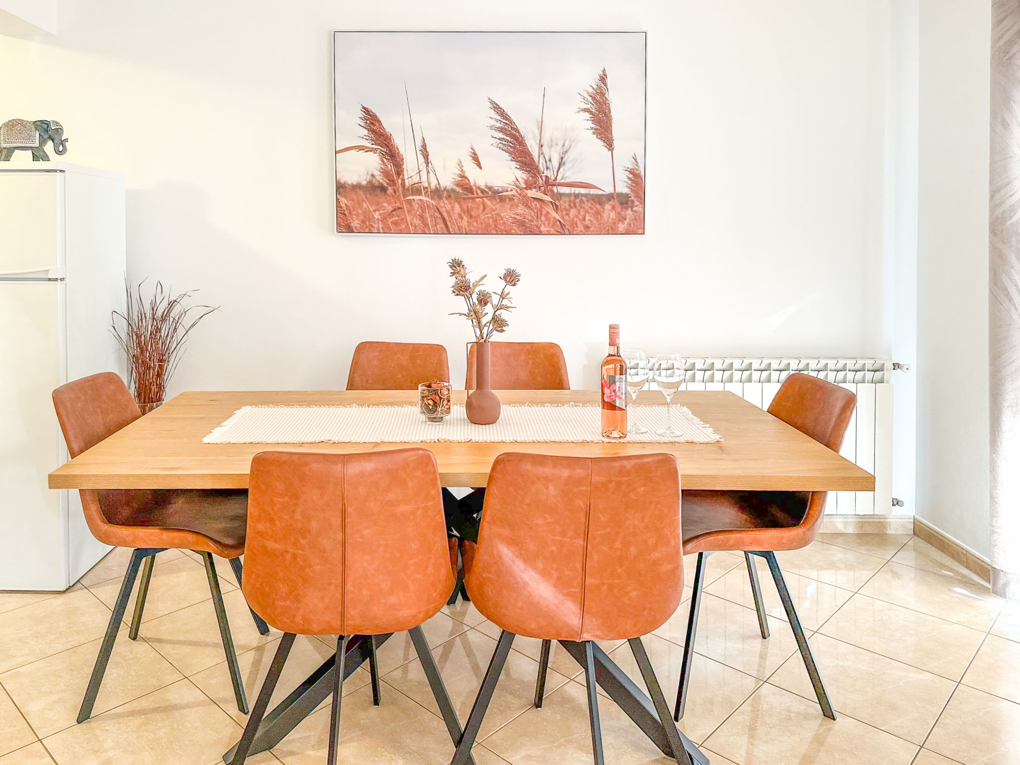 "Čančar", appartement 3-kamers 95 m2, op de begane grond. Woon-/eetkamer met 1 2-pers divanbed (160 cm, lengte 200 cm), Sat-TV en air-conditioning. Uitgang naar het terras. 1 kamer met 2 bedden (90 cm, lengte 200 cm). 1 kamer met 1 2-pers bed (2 x 90 cm, lengte 200 cm). Open keuken (1 kookplaat, oven, afwasmachine, broodrooster, waterkoker, magnetron, diepvriezer, elektrische koffiemachine). Douche/WC. Verwarming, gas-verwarming. Terras. Terrasmeubelen. Ter beschikking: wasmachine, strijkijzer. Internet (WiFi, gratis). Rookvrij huis. Maximaal 1 huisdier/hond toegestaan.