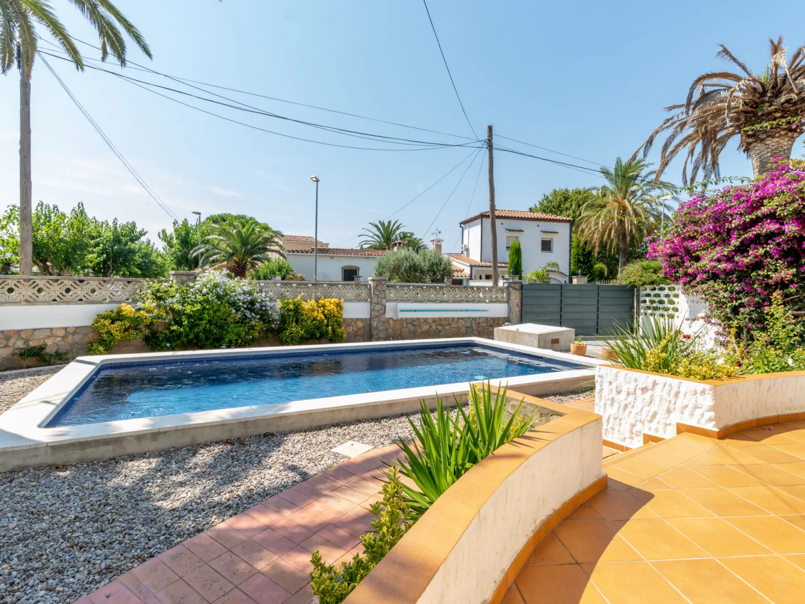 Gezellig, comfortabel huis "D´Ibis". In de wijk Pení, 500 m van het centrum van Empuriabrava, zonnige ligging villa wijk, perfecte locatie: in het centrum en toch rustig gelegen, gebied met weinig verkeer, 900 m van zee, 200 m van het kanaal, op het zuidwesten. Voor alleengebruik: groot, verzorgde tuin 250 m2 (omheind) met bloemen en bomen, openluchtzwembad (8 x 4 m, 165 cm diepte, seizoensgebonden beschikbaarheid: 01.Jan. - 31.Dec.). Buitendouche, prieel, terras, tuinmeubelen, barbecue, parkeerplaats op het terrein. Winkel 200 m, supermarkt 800 m, winkelcentrum 500 m, restaurant 120 m, bar, café, bushalte 800 m, treinstation 15 km, zandstrand "Empuriabrava" 900 m, duikschool 200 m. Jachthaven 2 km, golfterrein (9 holes) 5 km, tennis 2 km, midgetgolf 290 m, sportcentrum 1 km. Attracties in de buurt: Parque acuático Roses 10 km, Centro Aeródromo y túnel del viento 2 km, Castillo de Perelada 12 km, Museo Dalí de Figueres 15 km, Ruïnas de St.Martí de Empúries 21 km, Monasterio de Sant Pere de Rodes 23 km. De sleuteloverdracht vindt plaats bij het agentschap Interhome in Empuriabrava.