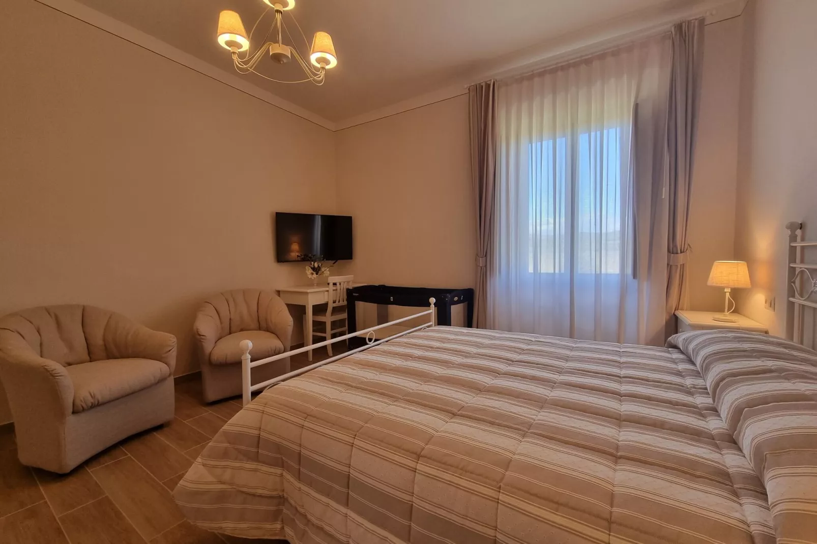 Het huis zelf verwelkomt u met zijn uitnodigende interieurs – denk aan terracotta vloeren, plafonds met houten balken en gezellige gemeenschappelijke ruimtes. Gasten kunnen samenkomen rond de open haard in de ruime eetkamer of genieten van rustige momenten op het terras met panoramisch uitzicht op het platteland. Vijf ruime slaapkamers met airconditioning zorgen voor rustgevende nachten, terwijl meerdere badkamers comfort en privacy garanderen.