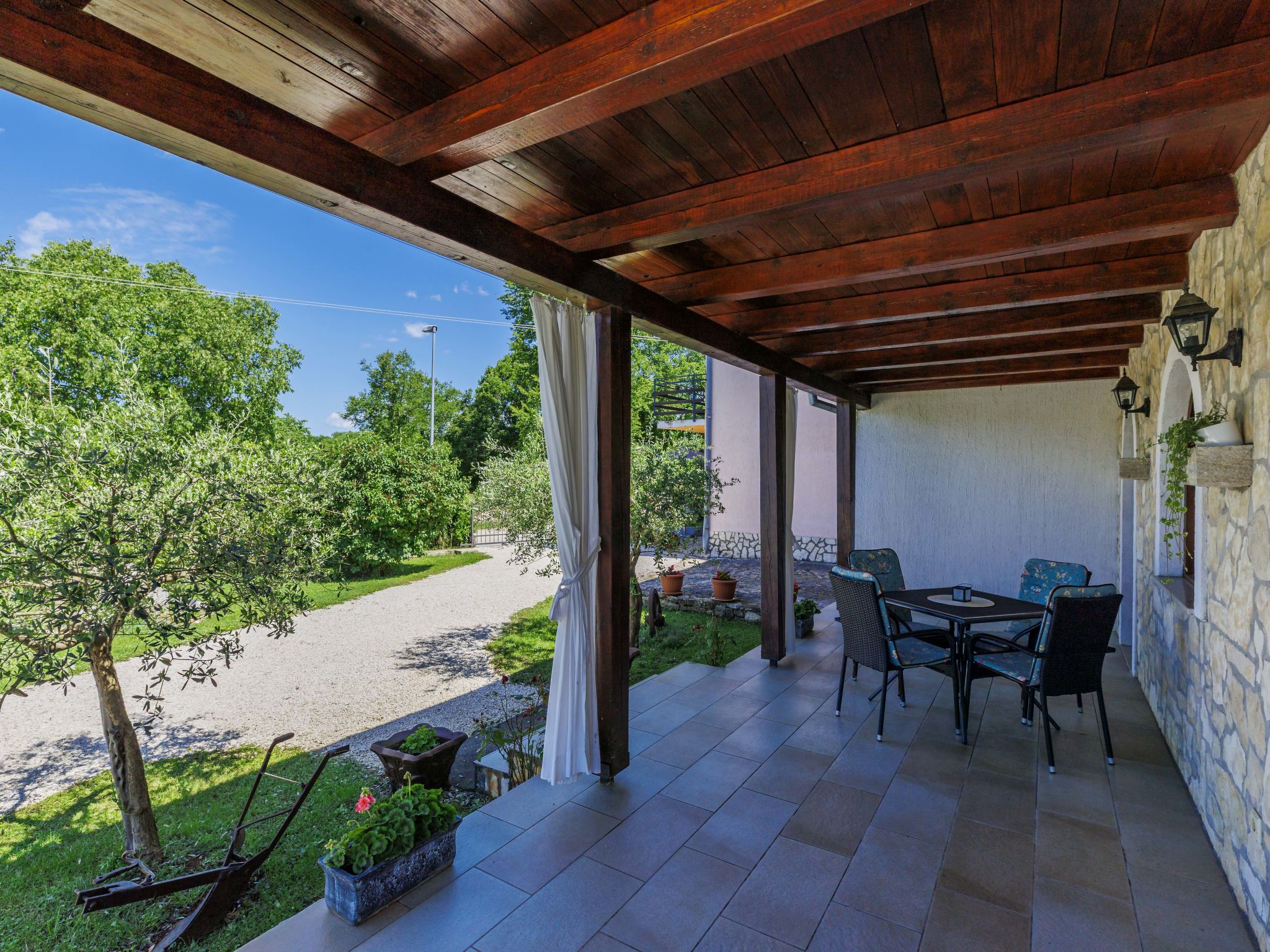 Twee onder één kap woning "Cekić". 300 m van het centrum van Sosići, 11 km van het centrum van Rovinj, 26 km van het centrum van Poreč, 11 km van zee. Voor medegebruik: terrein 400 m2 met gazon en bomen, openluchtzwembad rond (3,5 m diameter, 140 cm diepte, seizoensgebonden beschikbaarheid: 01.Mei. - 01.Okt.). Tuinmeubelen, barbecue (schommel). In het huis: internetaansluiting. Parkeerplaats (voor 3 auto's) op het terrein. Winkel 1.5 km, supermarkt 3 km, bushalte 200 m, kiezelstrand 11 km. Jachthaven 11 km.