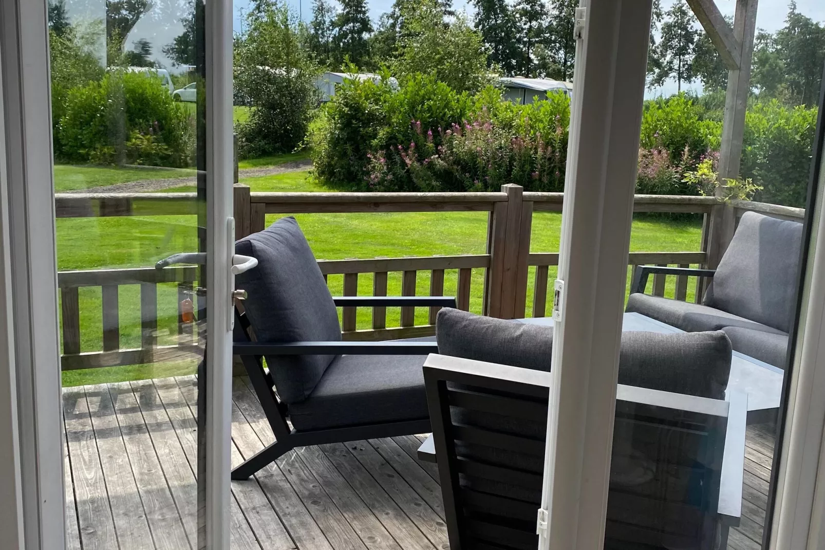 Verscholen in het rustige dorpje De Veenhoop biedt dit moderne chalet de perfecte ontsnapping naar het serene Friese platteland. Omgeven door groen en gelegen op een charmante camping, combineert het chalet comfort en eenvoud met de natuur pal voor de deur. Openslaande deuren vanuit de woonkamer leiden naar een overdekte veranda, ideaal voor een kopje koffie in de ochtend of een ontspannen avond in de zon. Met een goed uitgeruste keuken en doordachte extra's, zoals koffie en thee die klaarstaan bij aankomst, maakt het chalet het gemakkelijk en gastvrij om te settelen.