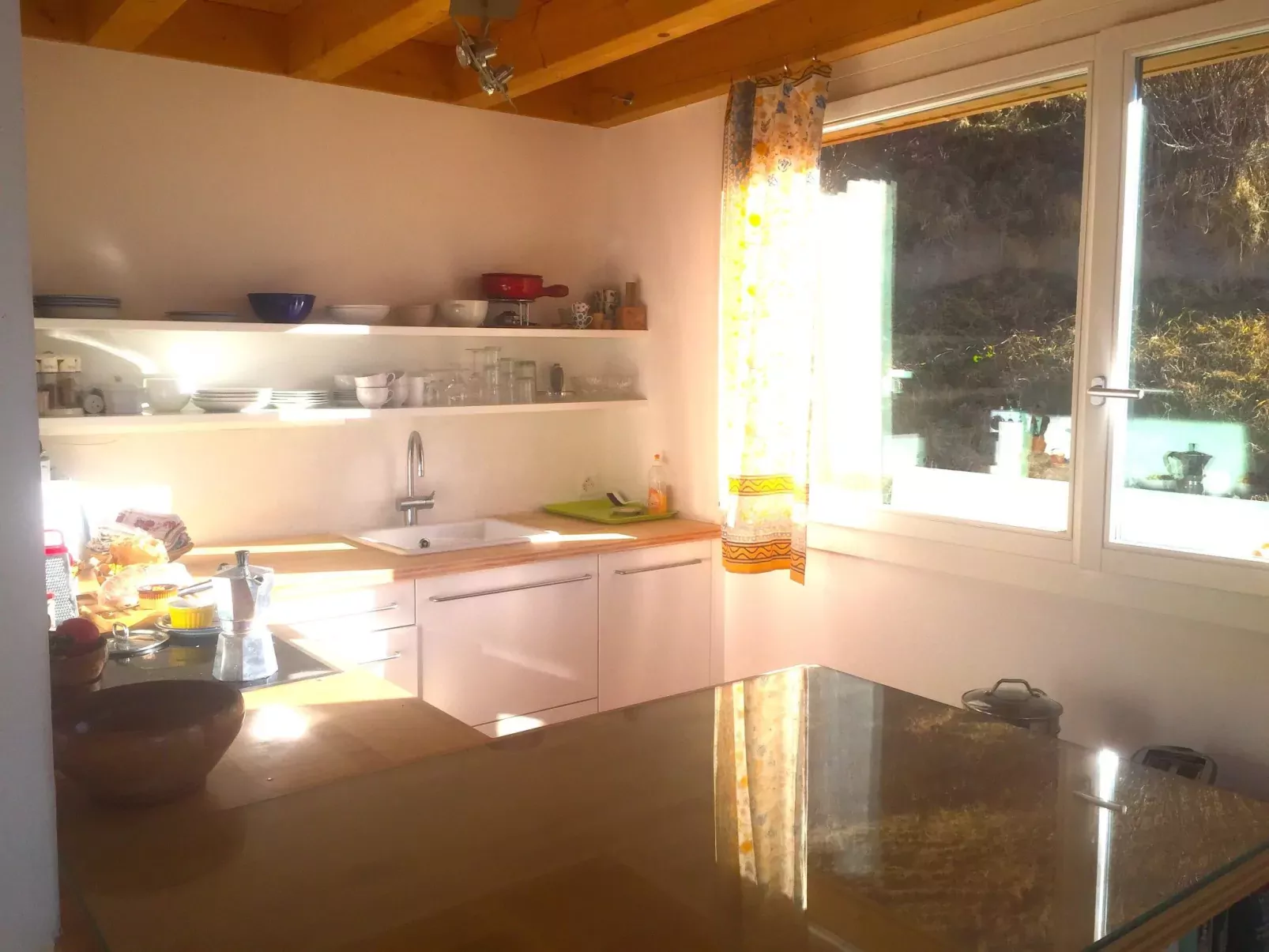 70 m2. Meer informatie beschikbaar bij de aanbieder: The maisonette is furnished with antique and new furniture. On the 1st floor on the gallery there is a sleeping area with a sofa bed for 2 persons, a bedroom with a double bed with Bico mattresses, in the living room there is a sofa (no sofa bed) The kitchenis is equipped with an automatic coffee machine (beans) as well as an Italian espresso pot. You`ll find all you need for raclette and fondue as well as a microwave and toaster. On the large balcony, protected from the rain, they can relax on a rattan lounge or eat at the large granite table. A sun blind protects them when it gets too hot. A white box for operating the sun blind is stored in the top drawer. Please put it back after use. For your entertainment there is a large TV with many channels. On the gallery you`ll find games and books - also nice photo- and children's books. (Large library as well in the garage.) Behind the garage is the laundry room with a tumbler. The flat is suitable for 2 adults or for a family with 1 - 2 children. Please note the spiral staircase. The bus runs 7 times a day from Lenk to the Tannenbühl bus stop. You can use the bus lines in Lenk free of charge with the guest card (Simmentalcard). In winter you enjoy 3 hours more sunshine than in the valley. Bread, milk, cheese and meat can be bought at the farms nearby. Please note in winter: depending on the snow situation, snow chains are compulsory on the access road (Bühlbergstrasse) leading to the chalet. 2 1/2-room apartment with gallery. The bathroom is equipped with shower/toilet, a hairdryer is available. Chalet Weitblick is located at 1500 m on the southwest slope of Lenk with access to the ski area Adelboden-Lenk and is the starting point for wonderful hikes. You also have the possibility to hike to the Hahnenmoospass and up to Adelboden. From the whole apartment - also from the open kitchen - you enjoy a wonderful view of the mountains. Public transport included in the Simmental and Saanenland with the SIMMENTAL CARD: Overnight guests in the Lenk-Simmental holiday region travel free of charge on public transport for excursions with a valid guest card. Included: electricity, heating, garage, parking, kitchen towels, bed linen, bath towels and final cleaning.