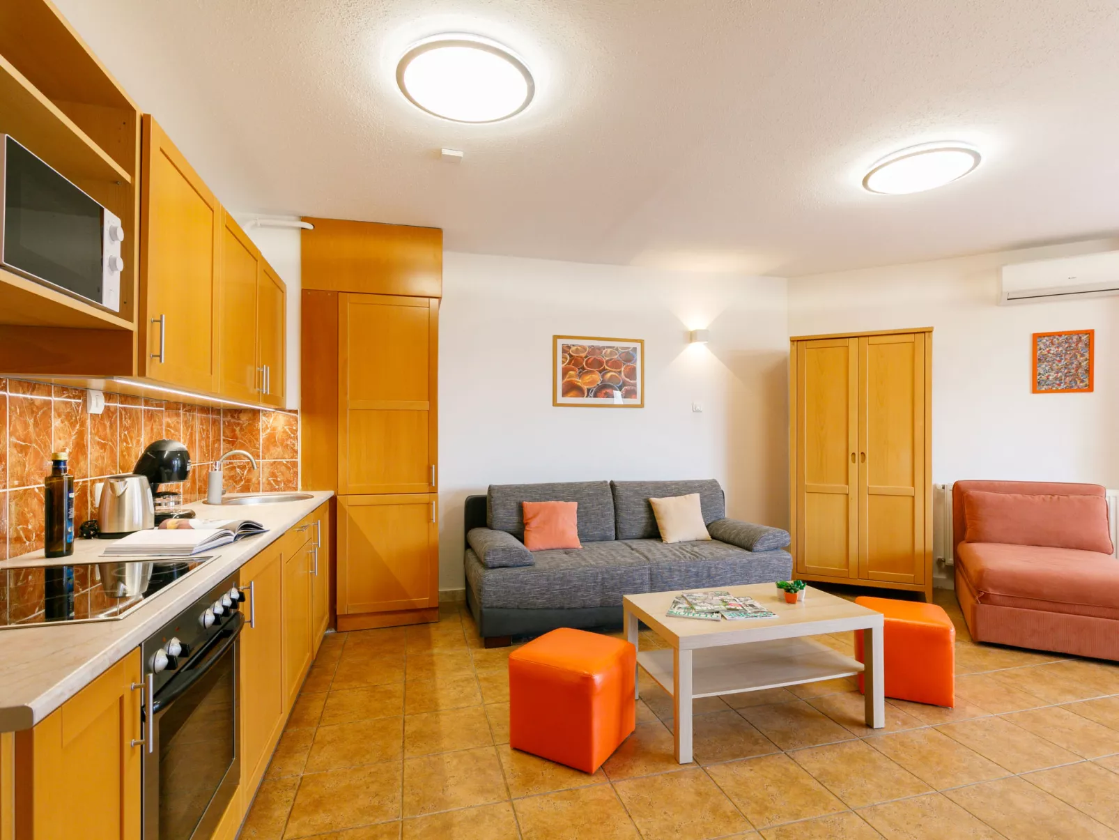 "Charlie", appartement 2-kamers op de 1e verdieping, op het oosten gelegen. Ruim en licht, comfortabel ingericht: open woon-/eetkamer met 1 2-pers divanbed (140 cm, lengte 200 cm), Kabel-TV (Flatscreen TV), air-conditioning. Uitgang naar het terras, op het oosten. 1 2-pers. kamer met 1 2-pers bed (160 cm, lengte 200 cm). Uitgang naar het terras. Open keuken (oven, 4 keramische glas kookplaten, waterkoker, magnetron, elektrische koffiemachine). Douche/WC. Verwarming (extra). Terras. Terrasmeubelen. Ter beschikking: klamboe, kinderstoel, kinderbed (extra). Internet (Internet (WiFi)). Rookmelders.
