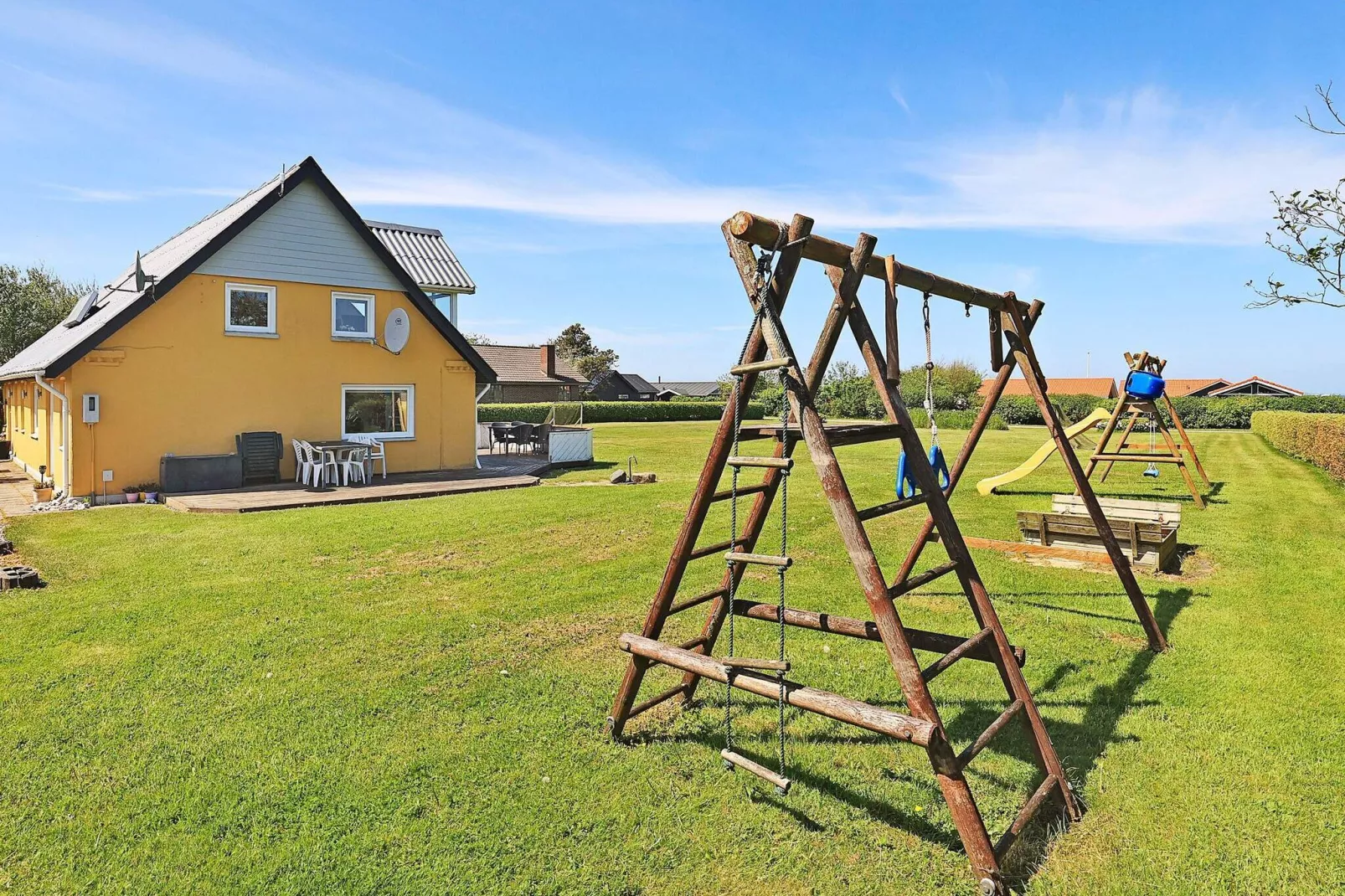 Geräumige Ferienunterkunft mit zwei Etagen, Rasenfläche und schöner Aussicht zum Limfjord. Auch vom gemütlichen Wohnzimmer großartiger Fjordblick. Solarenergie hilft hier den Stromverbrauch zu reduzieren. Schöne, 110 m² gr. Terrassenfläche am Haus, auf der Sie jederzeit eine windgeschützte Ecke finden können. Zudem liegt auf dem Grundstück ein Annex. Im Parterre des Hauses finden Sie einen 45 m² gr. gemütlichen Wohnbereich mit schöner Aussicht zum Limfjord, gr. Küche, Badezimmer, drei Schlafzimmer und einen Eingangsbereich. In der oberen Etage liegt ein gemütlicher Aufenthaltsbereich mit herrlicher Aussicht zum Limfjord sowie ein gr. SZ. Kinderbett und Hochstuhl sowie Schaukel, Sandkasten und eine Feuerstelle sind vorhanden. E-Heizung, Zentralheizung und zusätzlich stromsparende Solarenergie vorhanden. Außerdem ist das Haus mit Waschmaschine und Spülmaschine ausgestattet. Livbjerggaard Strand lädt Sie mit kinderfreundlichem Badestrand und grünen Wäldern sowohl zu einem entspannenden als auch zu einem aktiven Urlaub ein. Ca. 6 km zur Hafenstadt Struer und ca. 14 km bis nach Holstebro mit vielen interessanten Geschäften.A refundable deposit might be charged closer to your check-in date. The security deposit ensures a smooth stay and covers any additional services or consumption charges.This deposit covers utilities consumed during your stay and any additional services that may be taken.The final amount will be adjusted based on actual meter readings, actual usage of extra services, and any remaining balance will be refunded within 21 days after checkout.This deposit simply acts as a prepayment for charges that you would anyways pay for, ensuring a seamless stay and check-out experience.