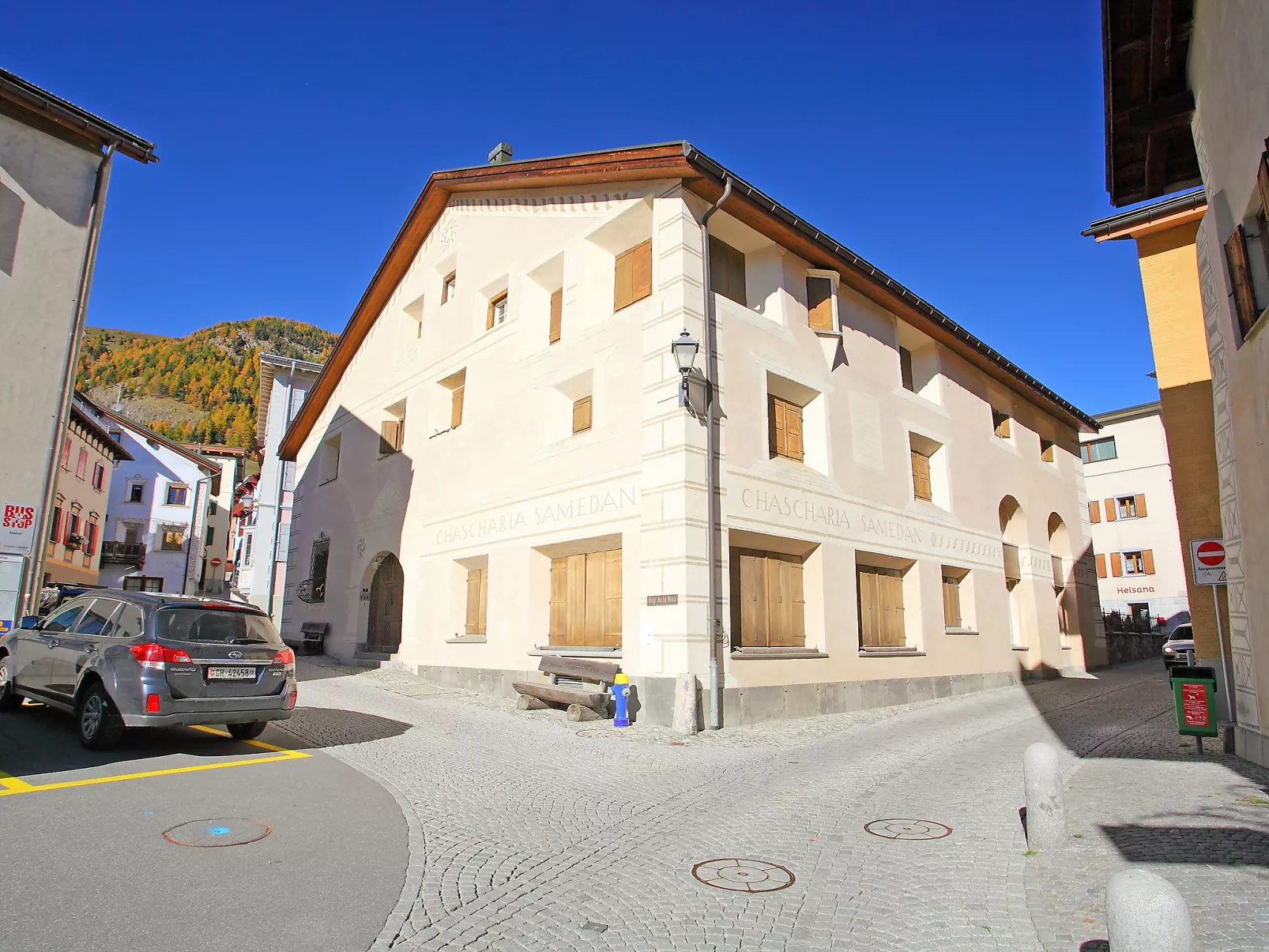 Samedan 8 km van St. Moritz: Zeer mooi, historisch appartementencomplex "Chesa Chascharia", van 2 verdiepingen, uit de 19e eeuw. In het centrum van Samedan, centrale ligging, perfecte locatie: in het centrum en toch rustig gelegen, 5 km van het meer. In het huis: lift, berging voor ski's, centrale verwarming, wasmachine, droger (voor medegebruik). Gemeenschappelijke garage. Winkel 10 m, supermarkt 300 m, restaurant 10 m, bakkerij, café 500 m, fietsverhuur 2.9 km, bushalte "Samedan, Central" 20 m, treinstation "Samedan" 550 m, overdekt zwembad 7 km, thermaalbad "Mineralbad & Spa Samedan" 120 m, meer St. Moritzer See 5 km. Golfterrein (18 holes) 1.4 km, surfschool 13 km, tennis 1.5 km, tennishal 7.3 km, midgetgolf 7 km, manege 6.3 km, wandelroutes, vanaf het huis, fietspad 300 m, kabelbaan 3.1 km, skilift 450 m, skiverhuur 400 m, skischool 3.1 km, kinderskischool 3.1 km, rodelbaan 3.6 km, langlaufloipe 1.4 km, ijsbaan 1.5 km, kinderspeelplaats 300 m. Attracties in de buurt: Chesa Planta in Samedan 300 m, Segantini Museum in St. Moritz 9.5 km, Nietzsche Haus in Sils-Maria 17 km, Olympic Bob Run St. Moritz 5.5 km, Kirche St. Maria in Pontresina 7.6 km. Bekende skigebieden kunnen gemakkelijk worden bereikt: Corviglia - Piz Nair 3.1 km, Corvatsch - Furtschellas 14 km, Diavolezza - Lagalb 18 km. Bekende meren kunnen gemakkelijk worden bereikt: St. Moritz See 5 km, Silvaplana See 13 km, Silser See 17 km. Wandelgebied Corviglia - Piz Nair, Muottas Muragl, Val Bever & Val Rosegg.