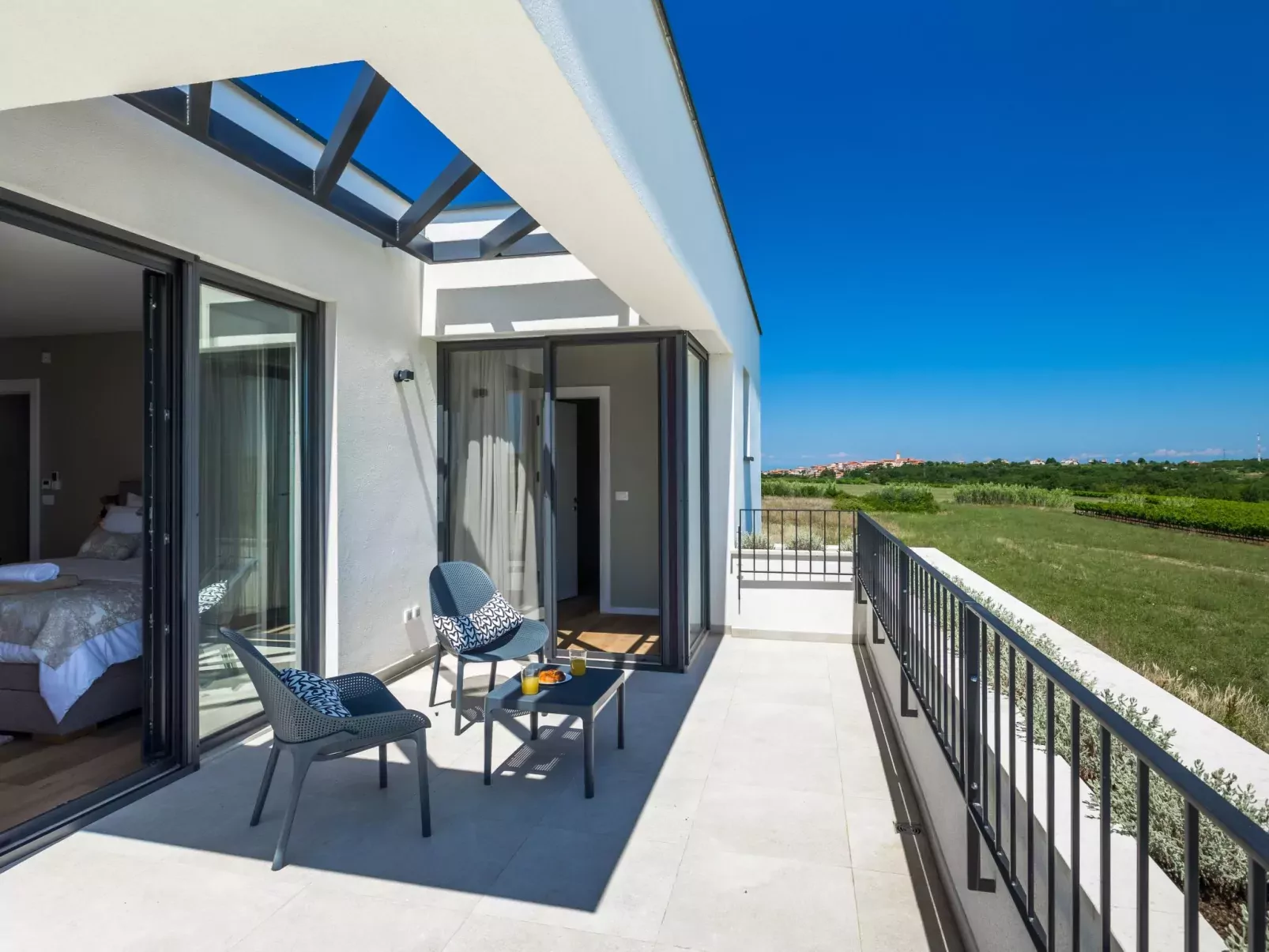 Luxueuze villa "Chiara", van 2 verdiepingen, bouwjaar 2021. 1 km van het centrum van Nova Vas, 2 km van het centrum van Brtonigla, 10 km van het centrum van Novigrad, 8.2 km van zee. Voor alleengebruik: terrein 900 m2 (omheind) met gazon, openluchtzwembad hoekig, verwarmd (4 x 10 m, 135 cm diepte, seizoensgebonden beschikbaarheid: 10.Apr. - 01.Nov.) met trap. Buitendouche, hot tub, badminton, terras (10 m2), tuinmeubelen, grill. In het huis: internetaansluiting, trampoline, wasmachine, fietsen beschikbaar. Beschikbaar: fietsen (2), kinderfietsen (1). Toegangsweg (500 m onverharde weg). Parkeerplaats (voor 3 auto's) bij het huis op het terrein. Winkel 1.5 km, restaurant 650 m, bushalte 4 km, kiezelstrand 8.2 km. Wandelroutes, vanaf het huis, fietspad 100 m. Attracties in de buurt: Aquapark 2 km. Groepen jongeren uitsluitend op aanvraag. Vliegveld 20 km van het huis. Openluchtzwembad verwarmd (extra). Videobewaking bij de oprit en parkeerplaats.