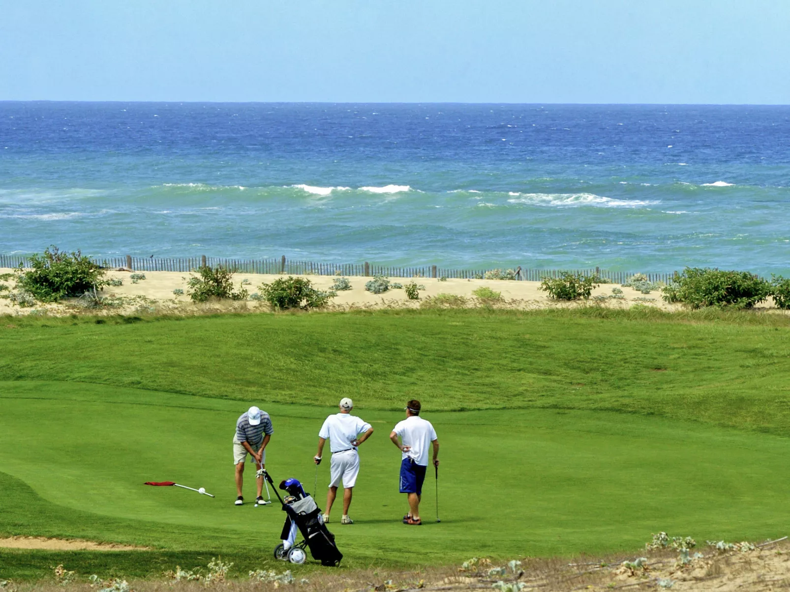 Mooi vakantiecomplex "Club Royal Océan La Prade". 85 huizen in de plaats. 2 km van het centrum van Moliets-Bourg, 8 km van het centrum van Vieux Boucau, 35 km van het centrum van Dax, 1.2 km van zee. Voor alleengebruik: tuin 600 m2 met gazon en bomen, openluchtzwembad (150 cm diepte, seizoensgebonden beschikbaarheid: 23.Mei. - 03.Okt.). In het complex: receptie, Internet (WiFi). Winkel 1.5 km, supermarkt 6 km, treinstation "Dax" 35 km, zandstrand 1.4 km. Golfterrein (18 holes) 700 m. De afgebeelde foto is slechts een voorbeeld. De huurobjecten kunnen wb. Woonoppervlak, kamerindeling verschillen.