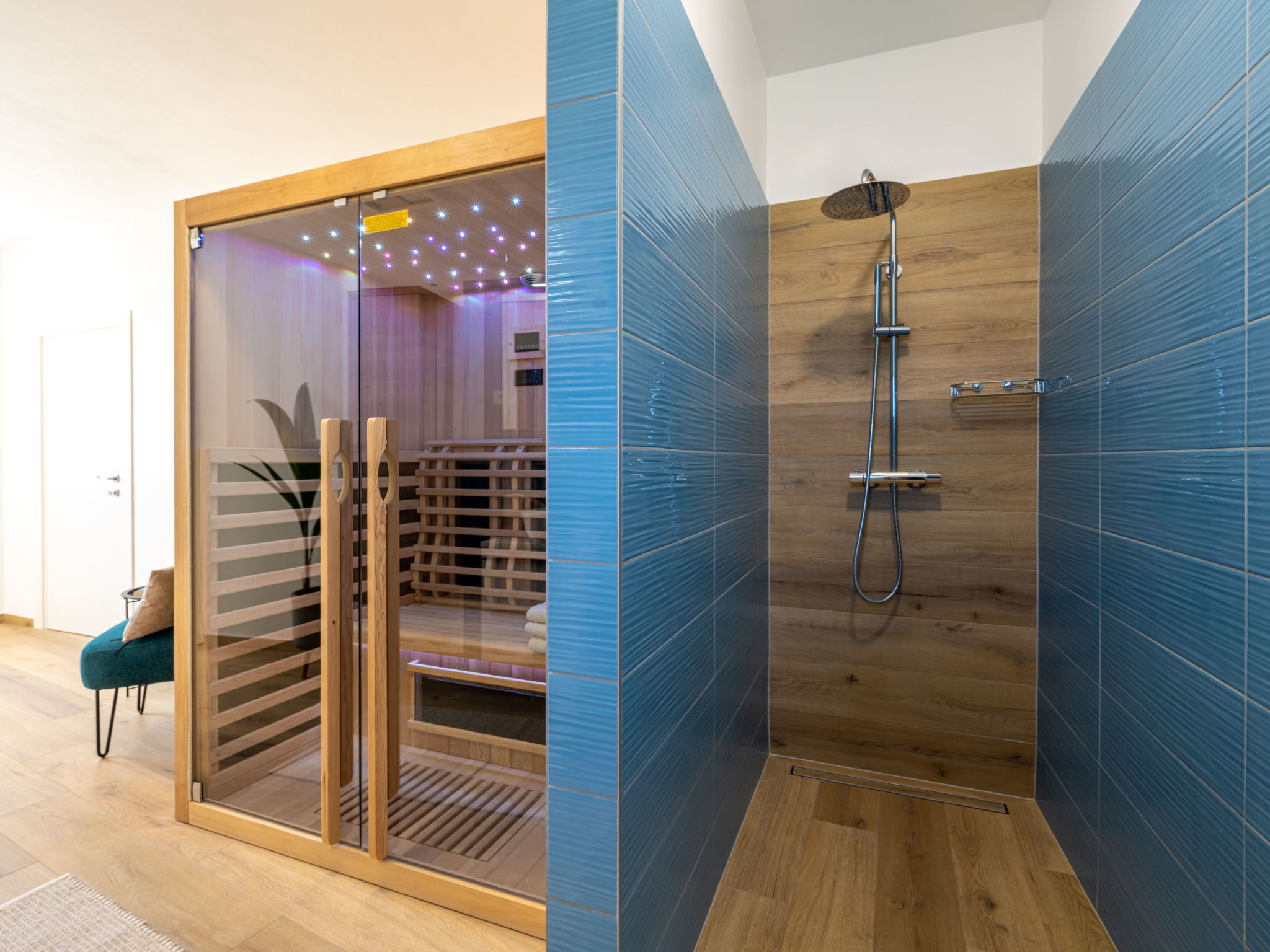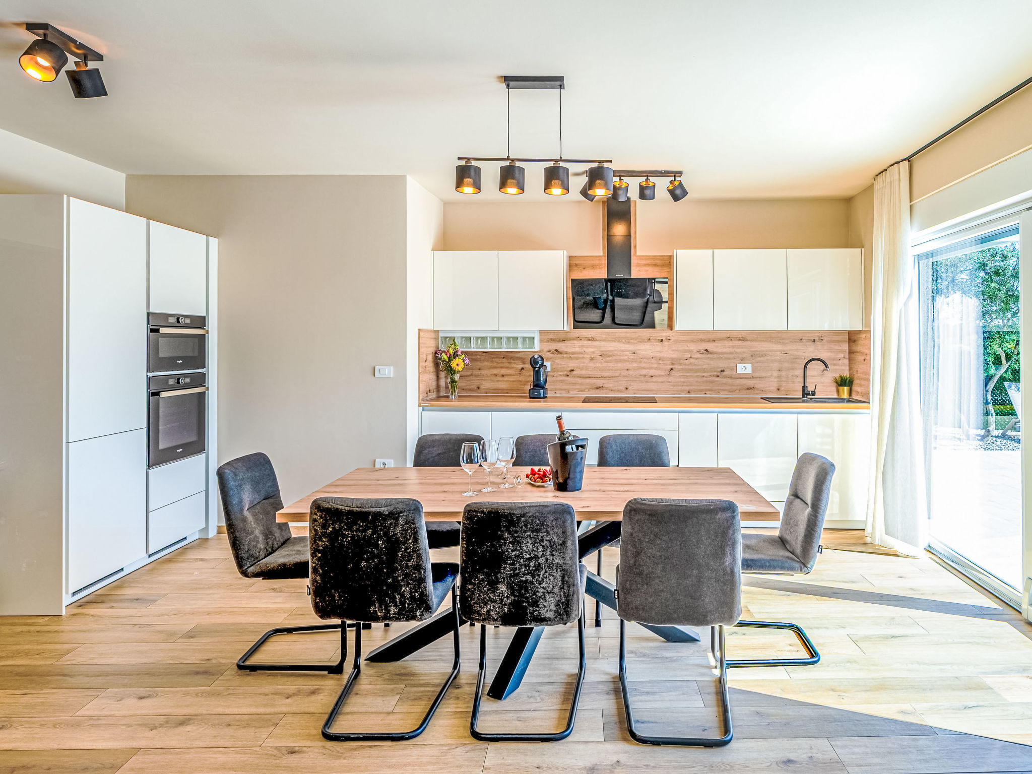 Vodnjan: Moderne, luxueuze villa "Roko", van 2 verdiepingen. 700 m van het centrum van Vodnjan, 6 km van het centrum van Fažana, 10 km van het centrum van Pula, 6 km van zee, 6 km van het strand. Voor alleengebruik: terrein 650 m2 (omheind) met gazon en bloemen, openluchtzwembad hoekig (8 x 4 m, 32 m2, 140 cm diepte, seizoensgebonden beschikbaarheid: 01.Mei. - 01.Okt.) met trap en zout-elektrolyse. Buitendouche, badminton, barbecue (schommel). In het huis: internetaansluiting, sauna, hot tub, trampoline, air-conditioning, wasmachine. Parkeerplaats (voor 3 auto's) bij het huis op het terrein. Winkel, supermarkt 300 m, restaurant 1 km, bushalte 260 m, kiezelstrand 6 km, strandbad 6 km. Golfterrein (18 holes) 7 km, tennis 2 km. Attracties in de buurt: NP Brijuni 6 km, Amphitheater 10 km. Geschikt voor families.