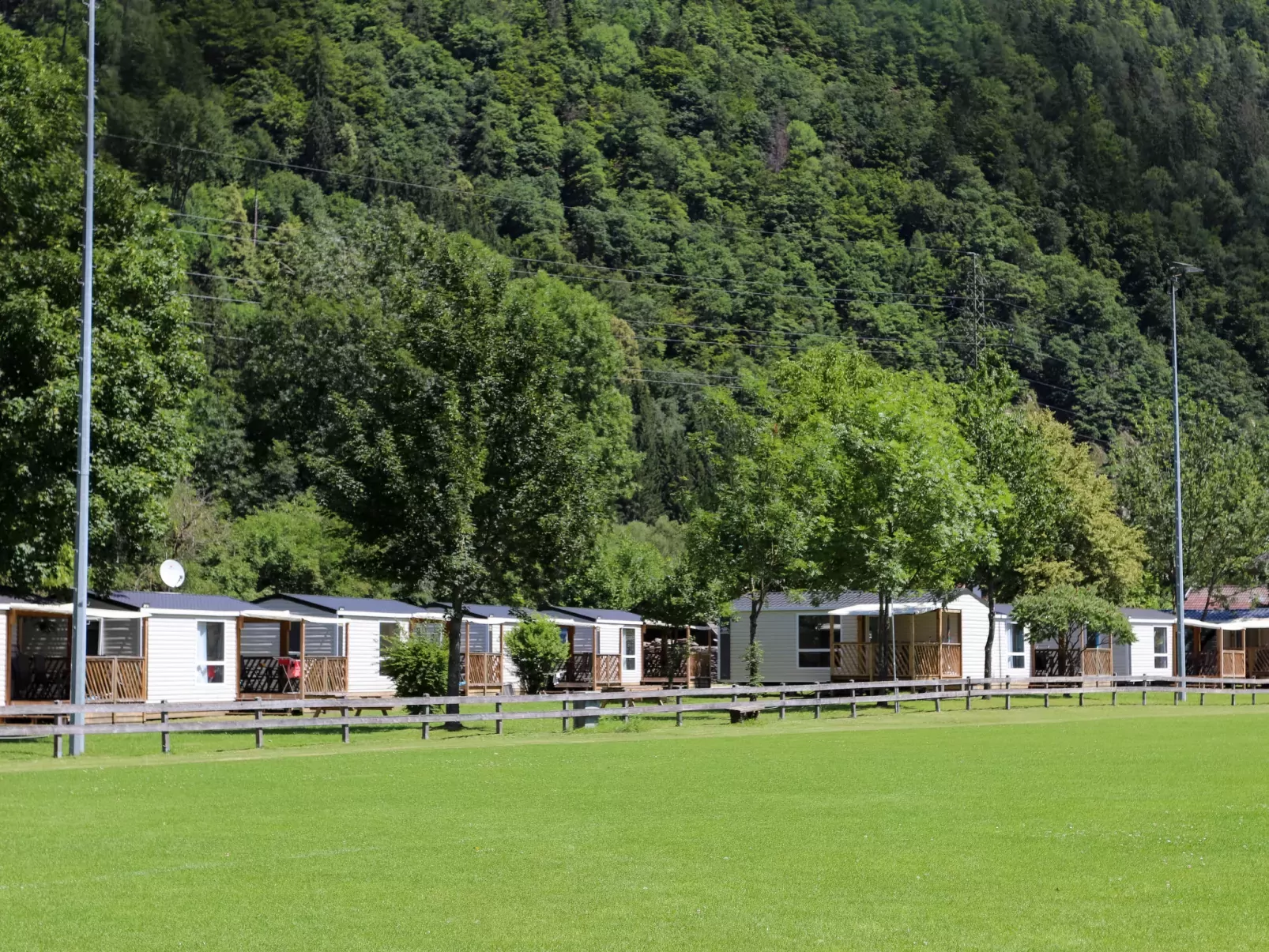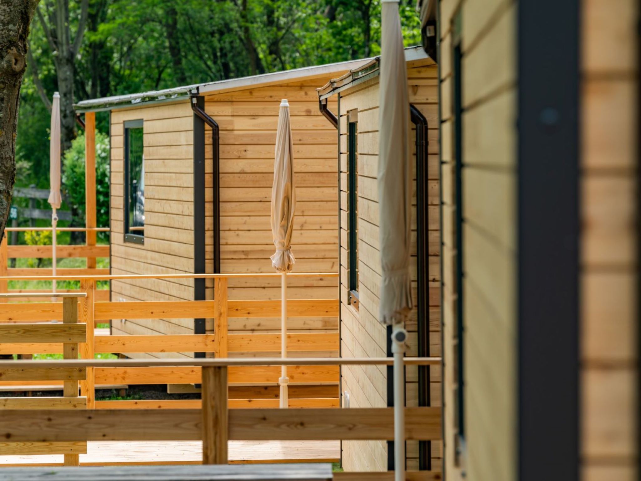 "Wood Cube", 3-kamers mobilhome 24 m2. Het objekt is geschikt voor 4 volwassenen. Comfortabel en modern ingericht: 1 2-pers. kamer met 1 2-pers bed (160 cm, lengte 200 cm). 1 kamer met 2 bedden (80 cm, lengte 200 cm). Woonkeuken (4 inductiekookplaten, magnetron, elektrische koffiemachine, raclette oven) met 1 slaapplaats (130 cm, lengte 190 cm), eettafel, Sat-TV en air-conditioning. Uitgang naar het terras. Douche, aparte WC. Elektrische verwarming, air-conditioning. Terras 9 m2, overdekt. Terrasmeubelen, elektrische barbecue (verrijdbaar), ligstoelen. Uitzicht op de bergen en het landschap. Ter beschikking: Internet (Internet (WiFi), gratis). Niet rokers woning. Privé aanlegsteiger voor een boot (extra). Maximaal 1 huisdier/hond toegestaan.