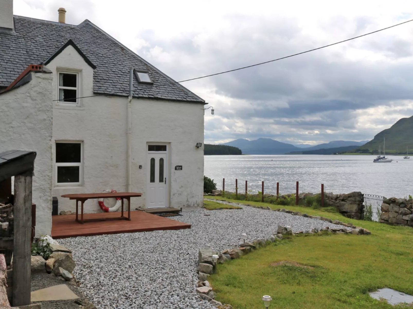 Isle of Skye: Comfortabele cottage "Dunan", vrijstaand. 5 m van zee, 5 m van het strand. Voor alleengebruik: wilde tuin. Patio, tuinmeubelen, parkeerplaats bij het huis. Winkel 10 km, bar 10 km, bushalte 100 m. Attracties in de buurt: Ashaig Beach 12 km, The Skye Bridge 17 km, Talisker Whisky Distillery 28 km. Auto noodzakelijk.